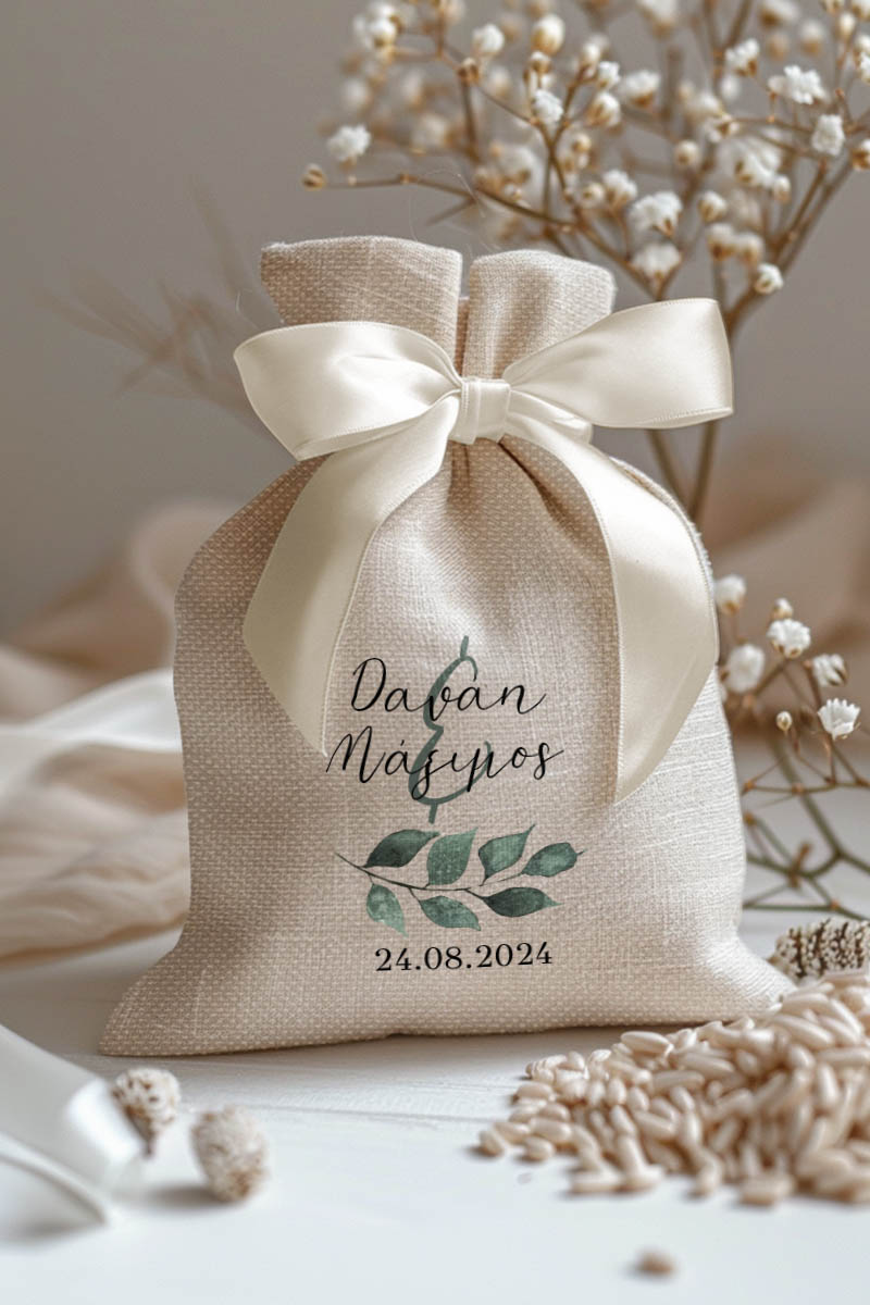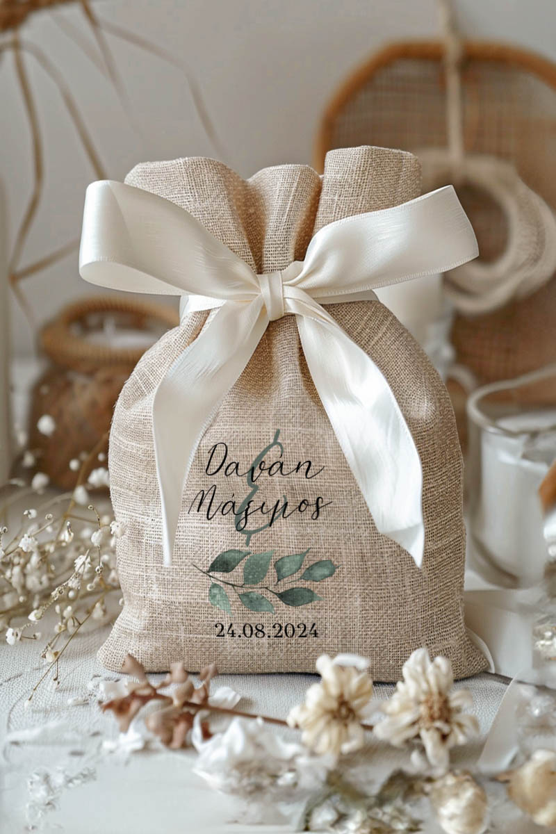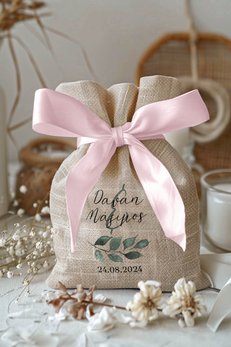 1.59€Μοντέρνες και Πρωτότυπες Μπομπονιέρες Γάμου και Βάπτισης με Πουγκί από Καμβά | Σετ Πουγκί, Εσωτερικό Τούλι & Κορδέλα Σατέν | Premium ποιότητα