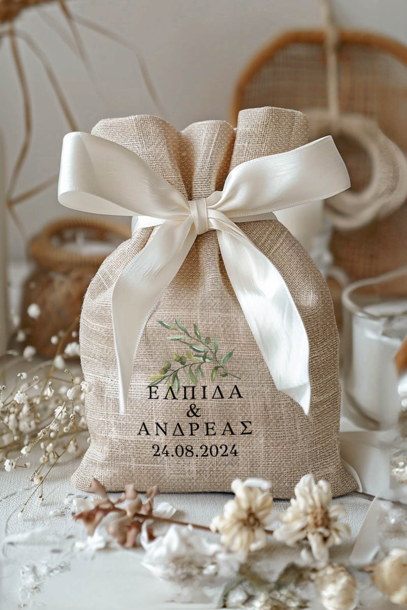1.59€Μοντέρνες και Πρωτότυπες Μπομπονιέρες Γάμου με Πουγκί από Καμβά | Σετ Πουγκί, Εσωτερικό Τούλι & Κορδέλα Σατέν | Premium ποιότητα
