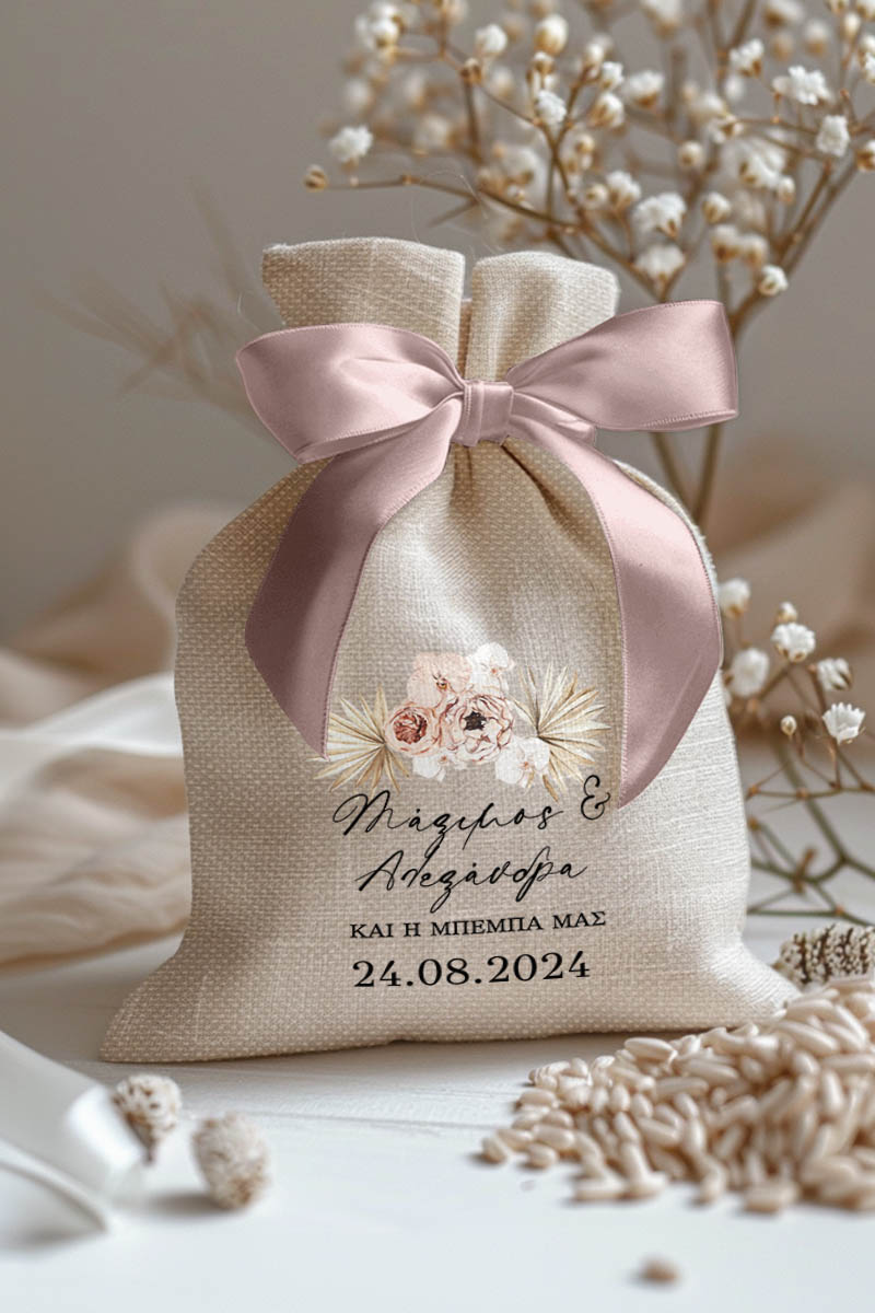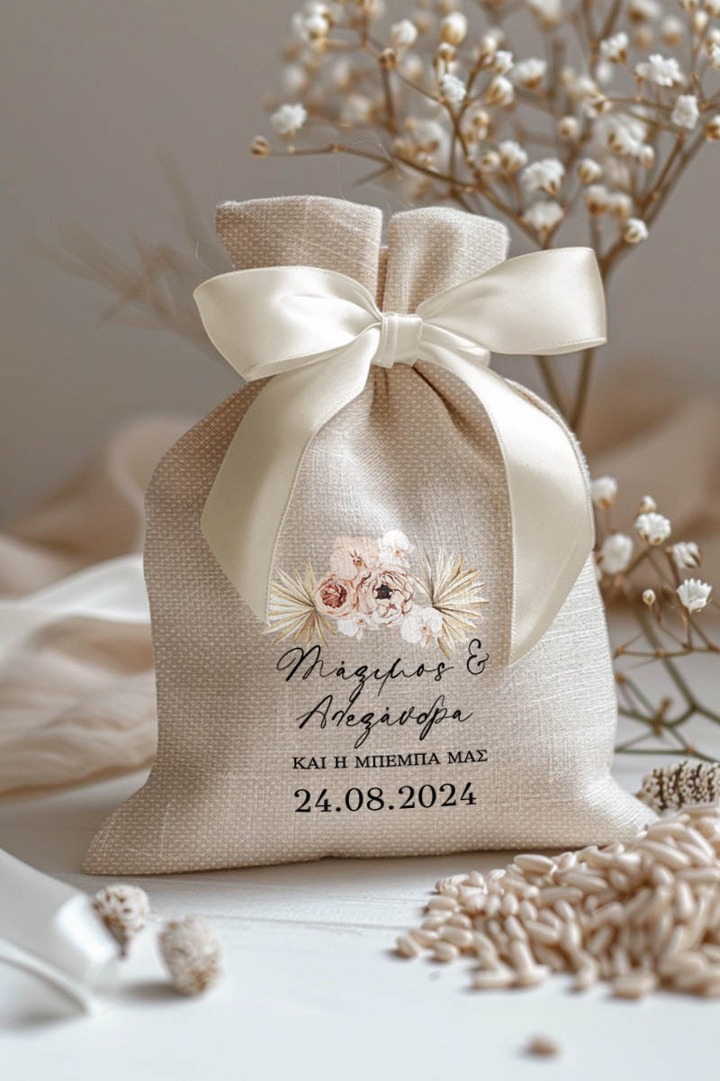 1.59€Μοντέρνες και Πρωτότυπες Μπομπονιέρες Γάμου με Πουγκί από Καμβά | Σετ Πουγκί, Εσωτερικό Τούλι & Κορδέλα Σατέν | Premium ποιότητα