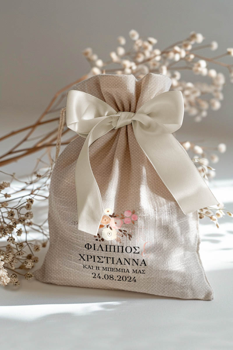 1.59€Μοντέρνες και Πρωτότυπες Μπομπονιέρες Γάμου και Βάπτισης με Πουγκί από Καμβά | Σετ Πουγκί, Εσωτερικό Τούλι & Κορδέλα Σατέν | Premium ποιότητα