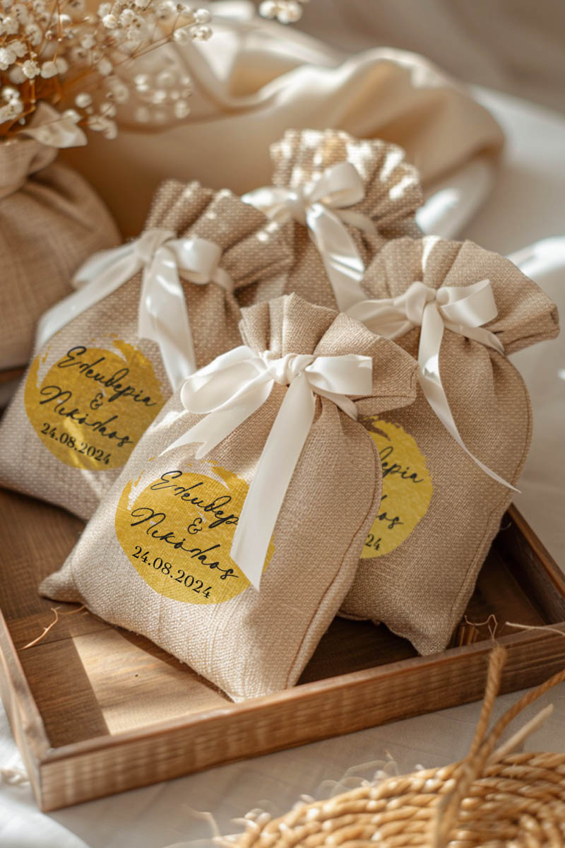 1.59€Μοντέρνες και Πρωτότυπες Μπομπονιέρες Γάμου και Βάπτισης με Πουγκί από Καμβά | Σετ Πουγκί, Εσωτερικό Τούλι & Κορδέλα Σατέν | Premium ποιότητα
