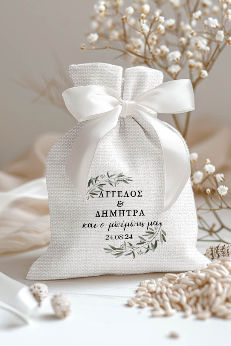 1.59€Μοντέρνες και Πρωτότυπες Μπομπονιέρες Γάμου και Βάπτισης με Πουγκί από Καμβά | Σετ Πουγκί, Εσωτερικό Τούλι & Κορδέλα Σατέν | Premium ποιότητα