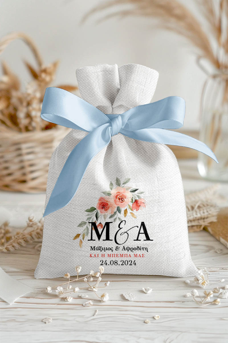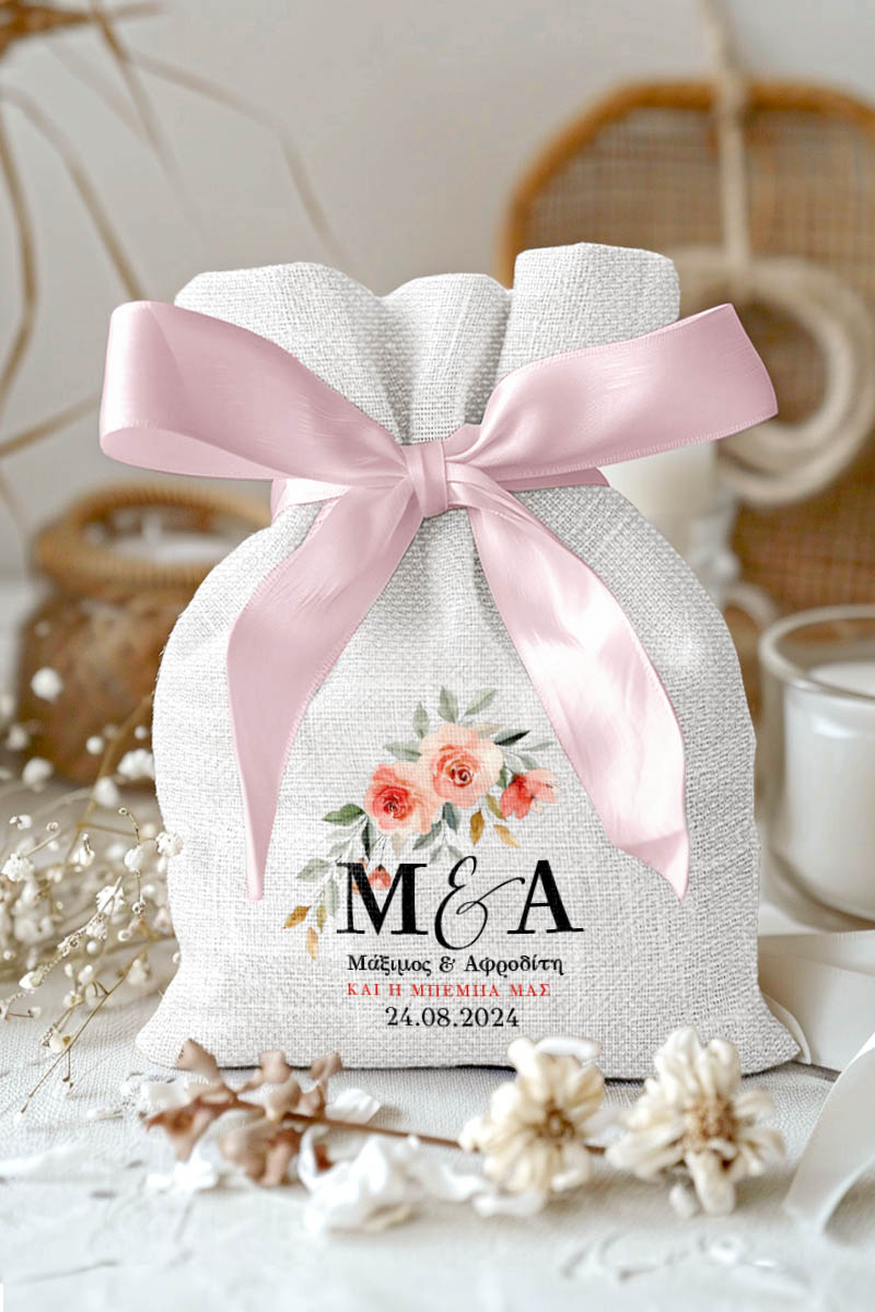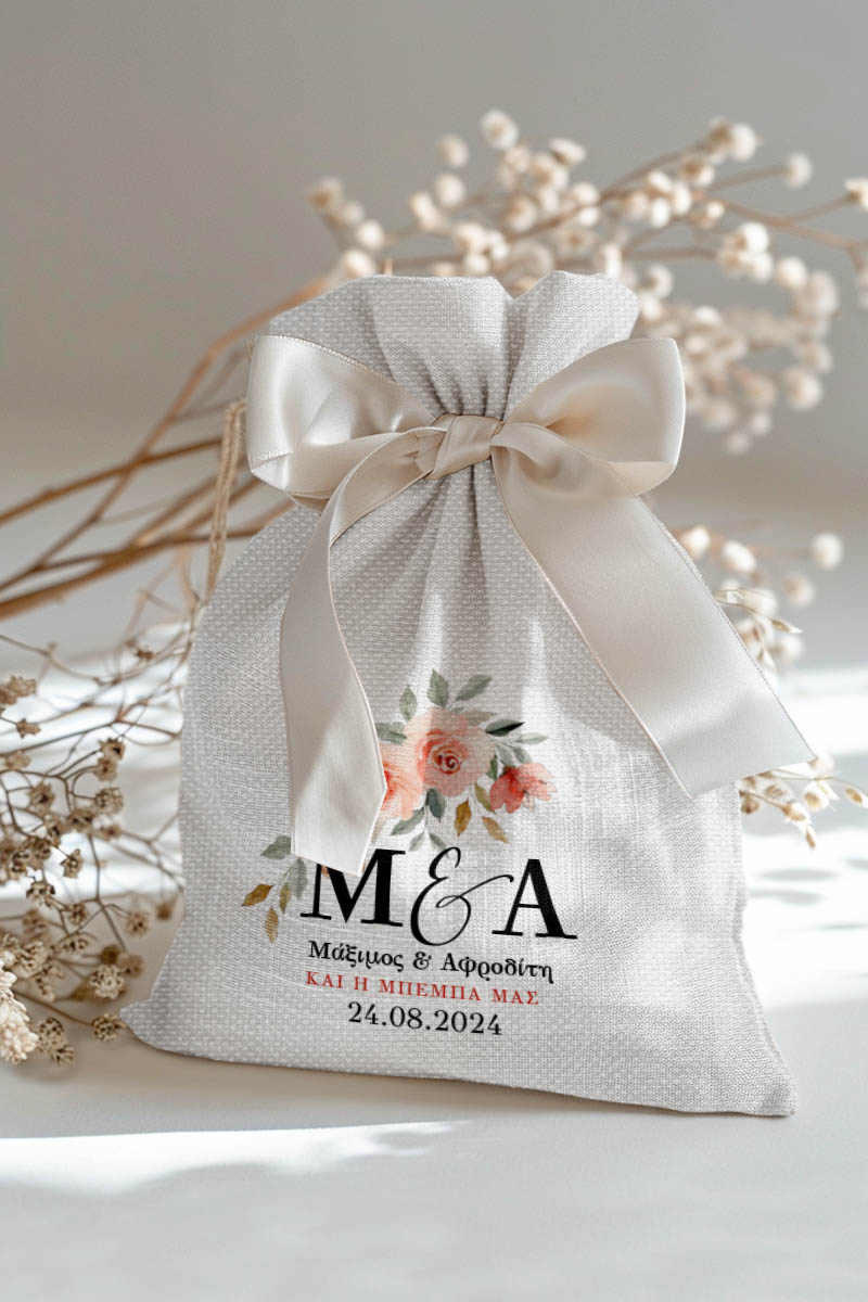 1.59€Μοντέρνες και Πρωτότυπες Μπομπονιέρες Γάμου και Βάπτισης με Πουγκί από Καμβά | Σετ Πουγκί, Εσωτερικό Τούλι & Κορδέλα Σατέν | Premium ποιότητα