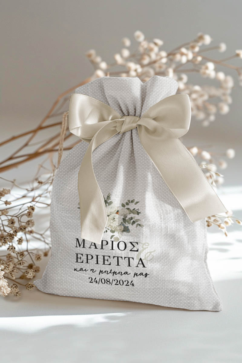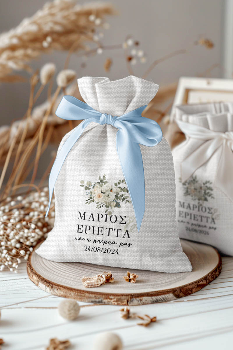 1.59€Μοντέρνες και Πρωτότυπες Μπομπονιέρες Γάμου και Βάπτισης με Πουγκί από Καμβά | Σετ Πουγκί, Εσωτερικό Τούλι & Κορδέλα Σατέν | Premium ποιότητα