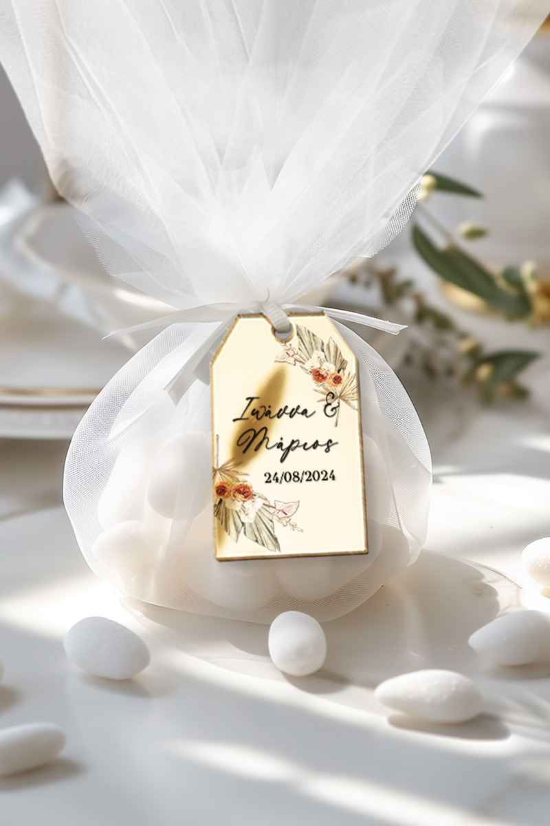 0.59€ – 1.49€Μοντέρνες & πρωτότυπες μπομπονιέρες Γάμου με τούλι & κρεμαστό σχέδιο| Σετ εξωτερικό τούλι, Εσωτερικό τούλι, Κορδέλα σατέν & Κρεμαστό σχέδιο σε premium χαρτί, ξύλο ή plexiglass | Premium ποιότητα
