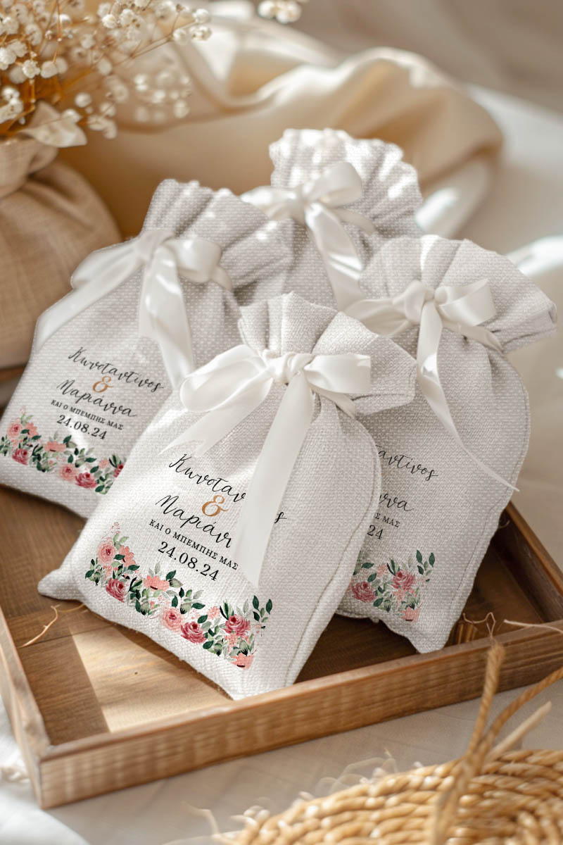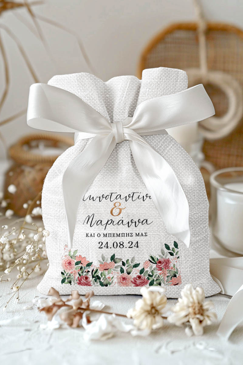 1.59€Μοντέρνες και Πρωτότυπες Μπομπονιέρες Γάμου με Πουγκί από Καμβά | Σετ Πουγκί, Εσωτερικό Τούλι & Κορδέλα Σατέν | Premium ποιότητα
