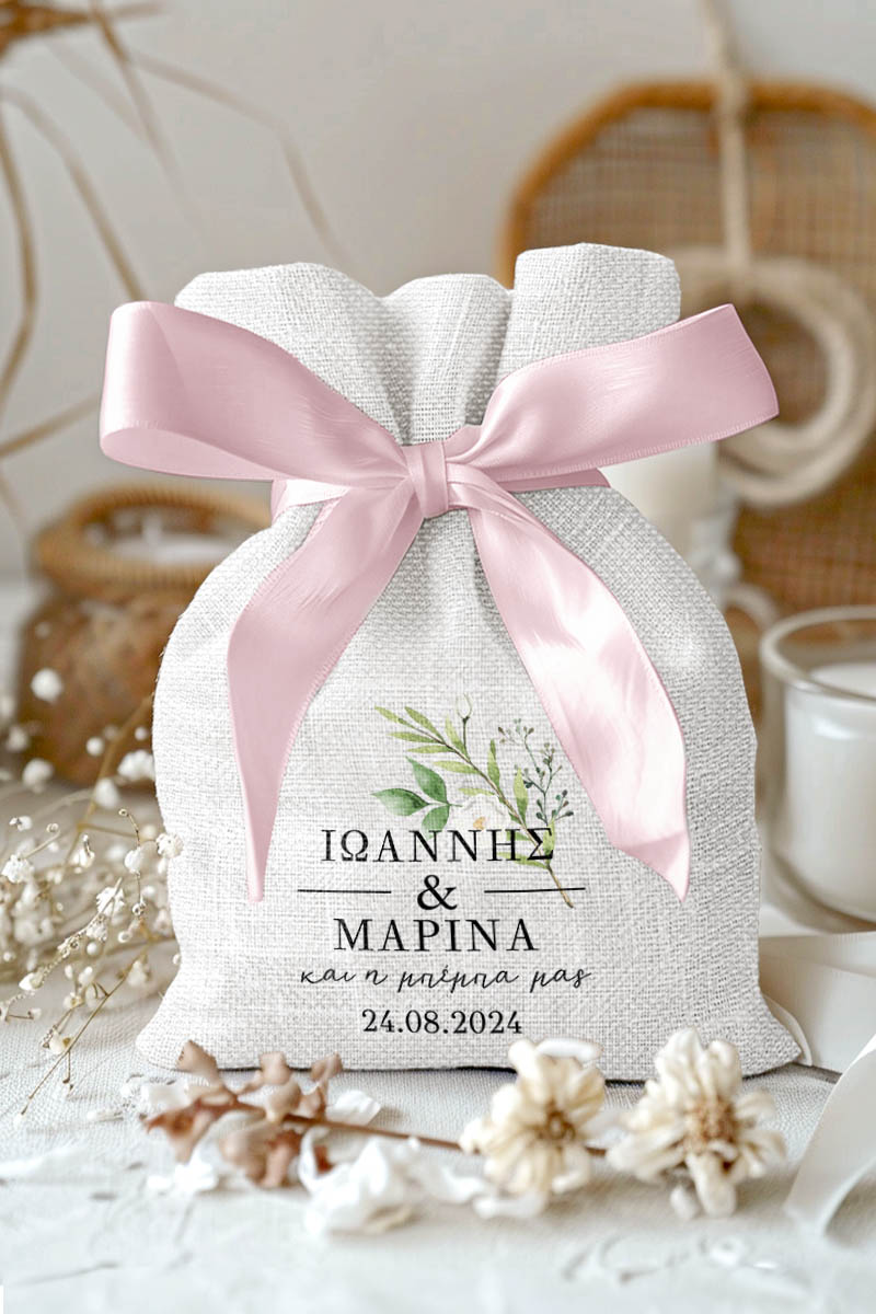1.59€Μοντέρνες και Πρωτότυπες Μπομπονιέρες Γάμου και Βάπτισης με Πουγκί από Καμβά | Σετ Πουγκί, Εσωτερικό Τούλι & Κορδέλα Σατέν | Premium ποιότητα