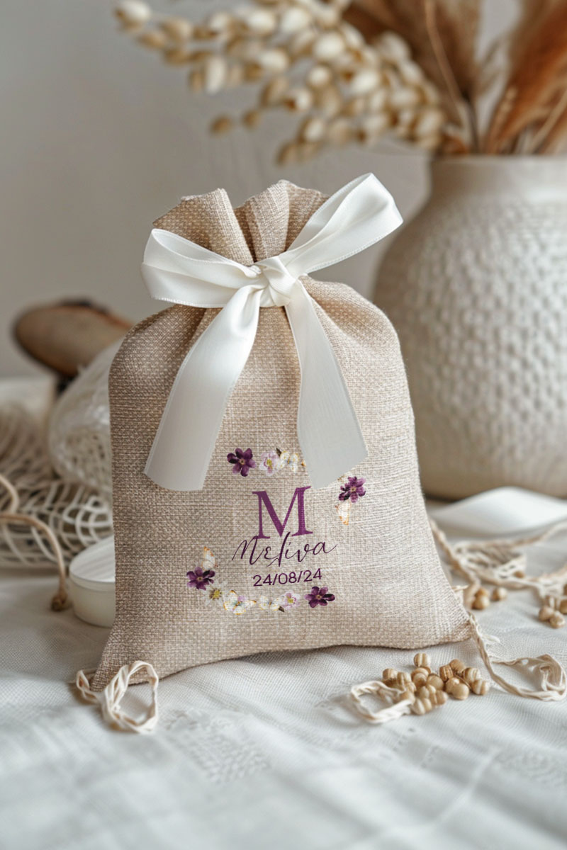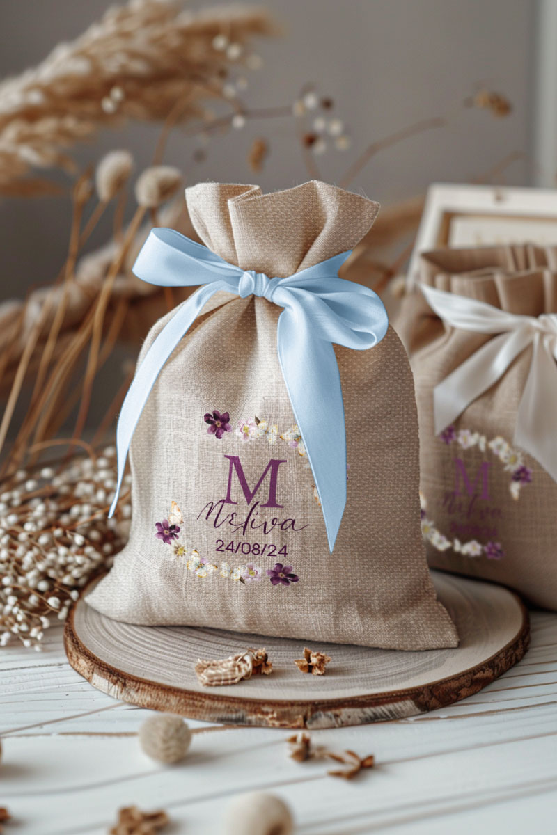 1.59€Μοντέρνες και Πρωτότυπες Μπομπονιέρες Βάπτισης με Πουγκί από Καμβά | Σετ Πουγκί, Εσωτερικό Τούλι & Κορδέλα Σατέν | Premium ποιότητα