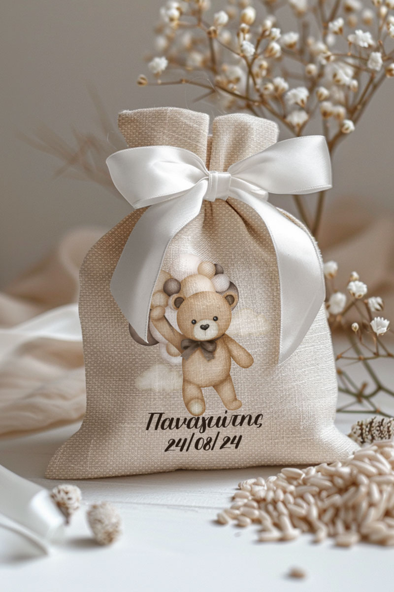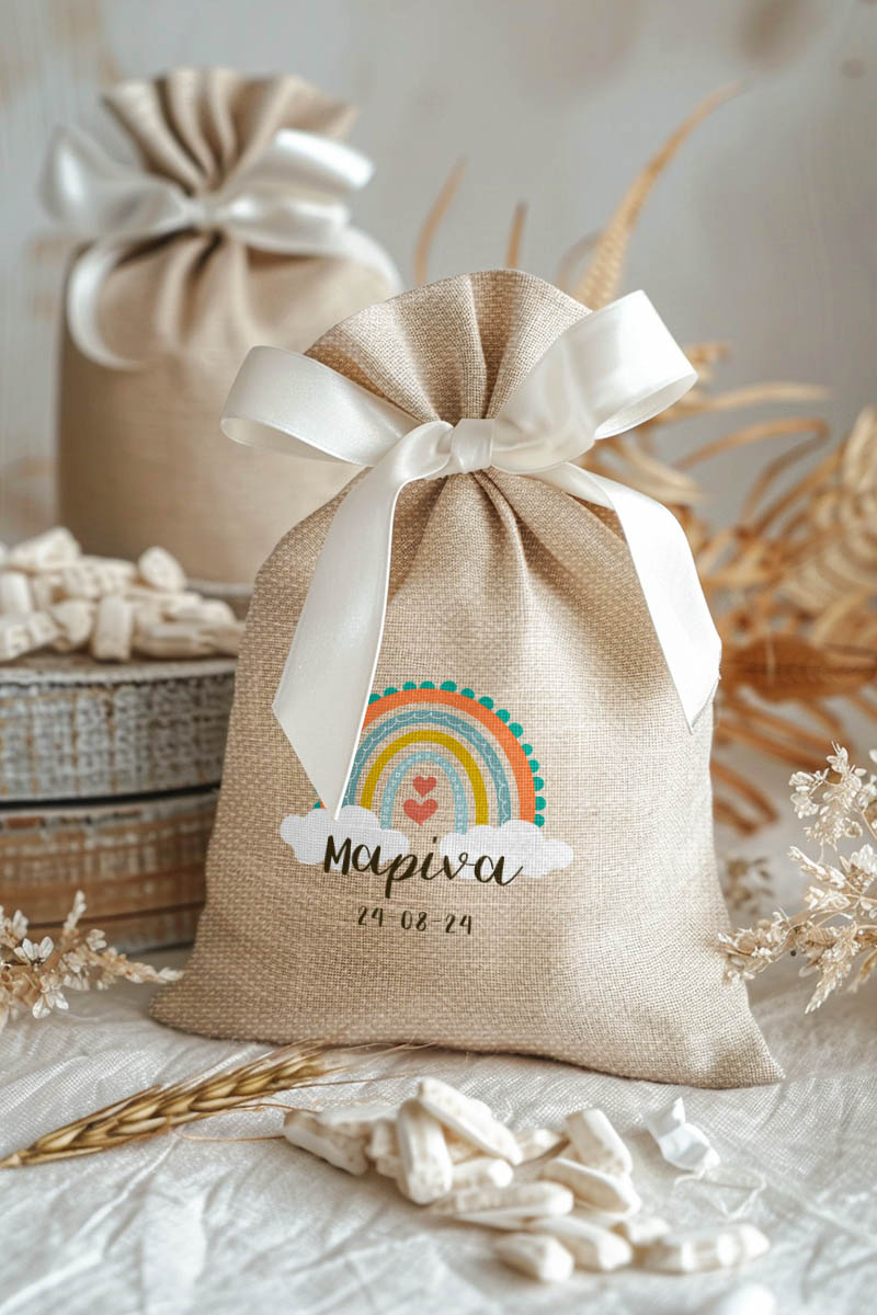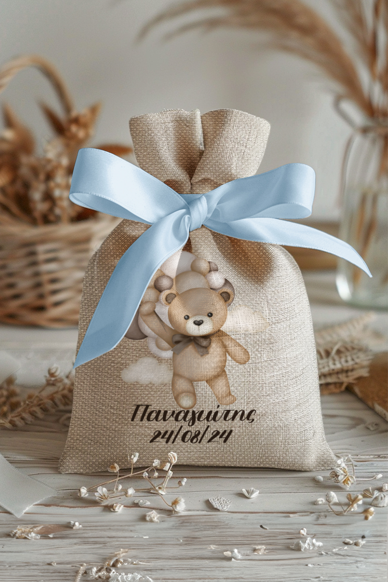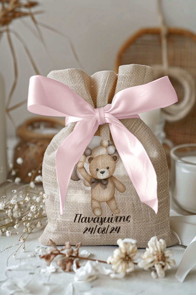 1.59€Μοντέρνες και Πρωτότυπες Μπομπονιέρες Βάπτισης με Πουγκί από Καμβά | Σετ Πουγκί, Εσωτερικό Τούλι & Κορδέλα Σατέν | Premium ποιότητα