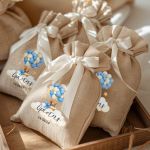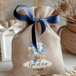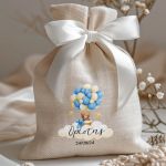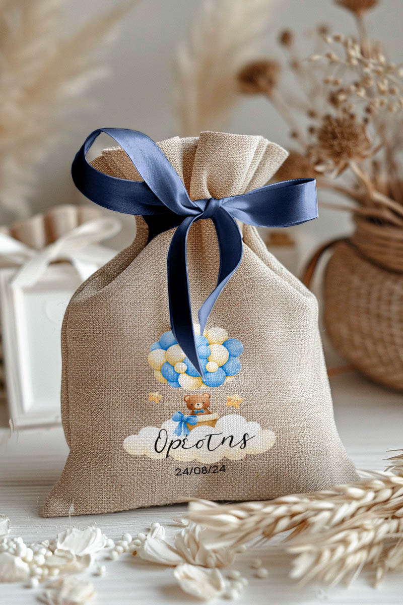 Μοντέρνες και Πρωτότυπες Μπομπονιέρες Βάπτισης με Πουγκί από Καμβά | Σετ Πουγκί, Εσωτερικό Τούλι & Κορδέλα Σατέν | Premium ποιότητα