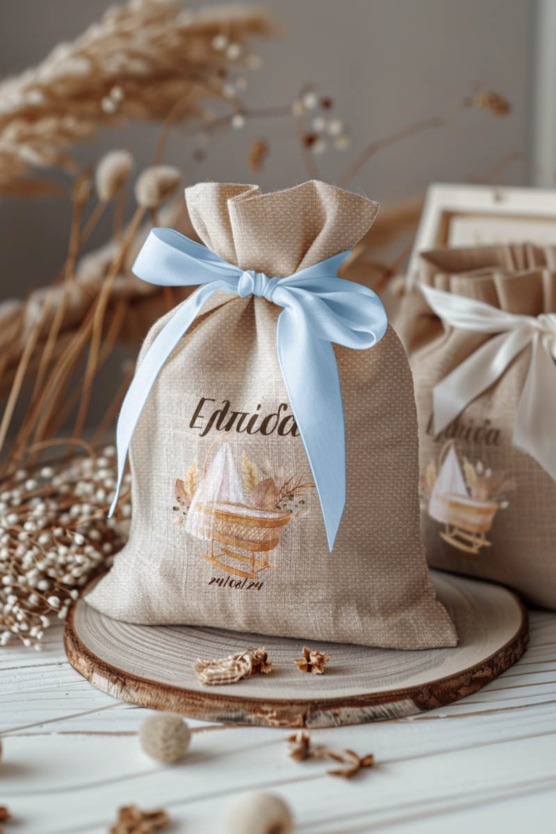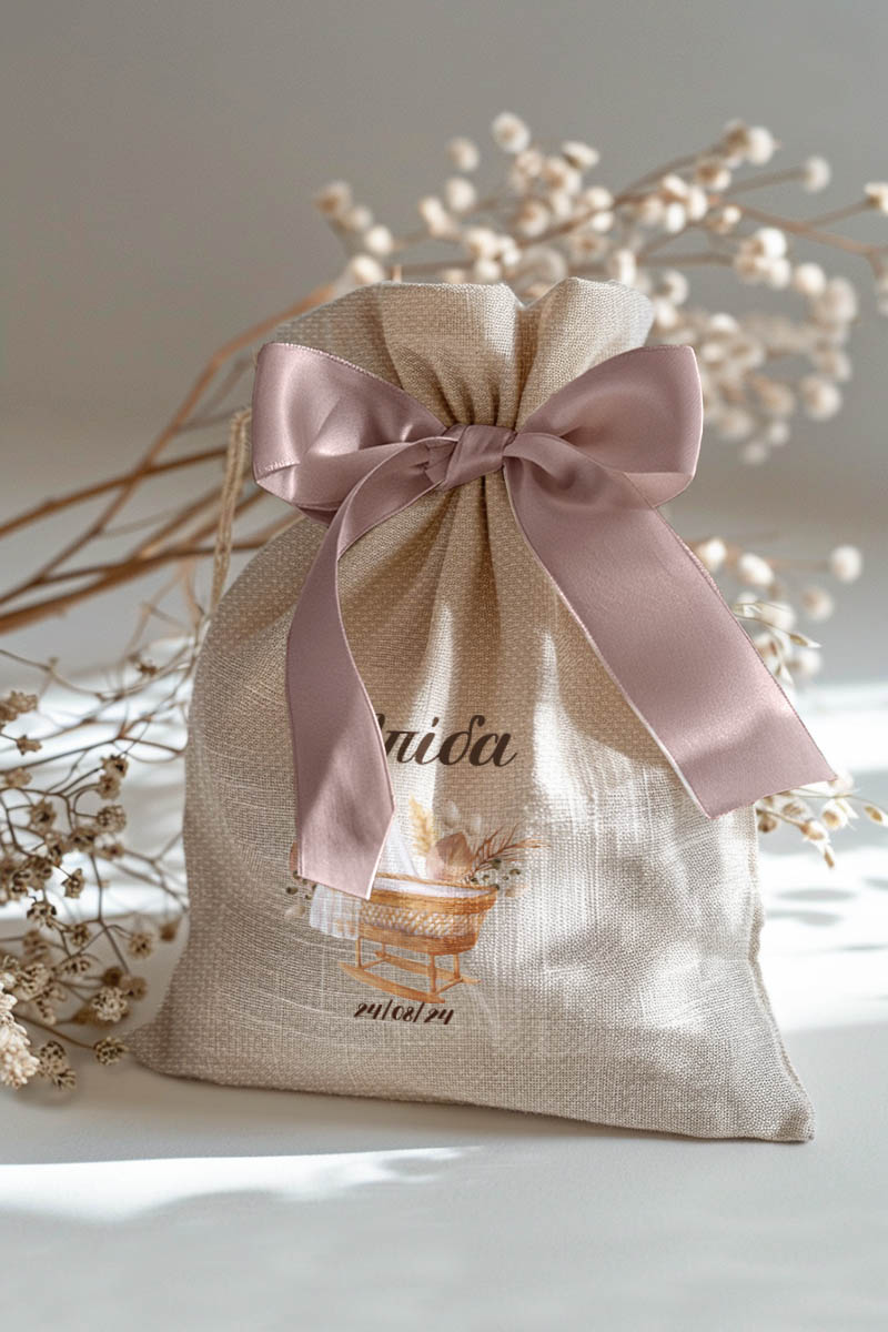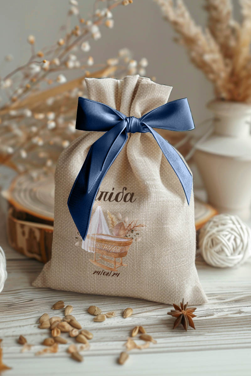 1.59€Μοντέρνες και Πρωτότυπες Μπομπονιέρες Βάπτισης με Πουγκί από Καμβά | Σετ Πουγκί, Εσωτερικό Τούλι & Κορδέλα Σατέν | Premium ποιότητα