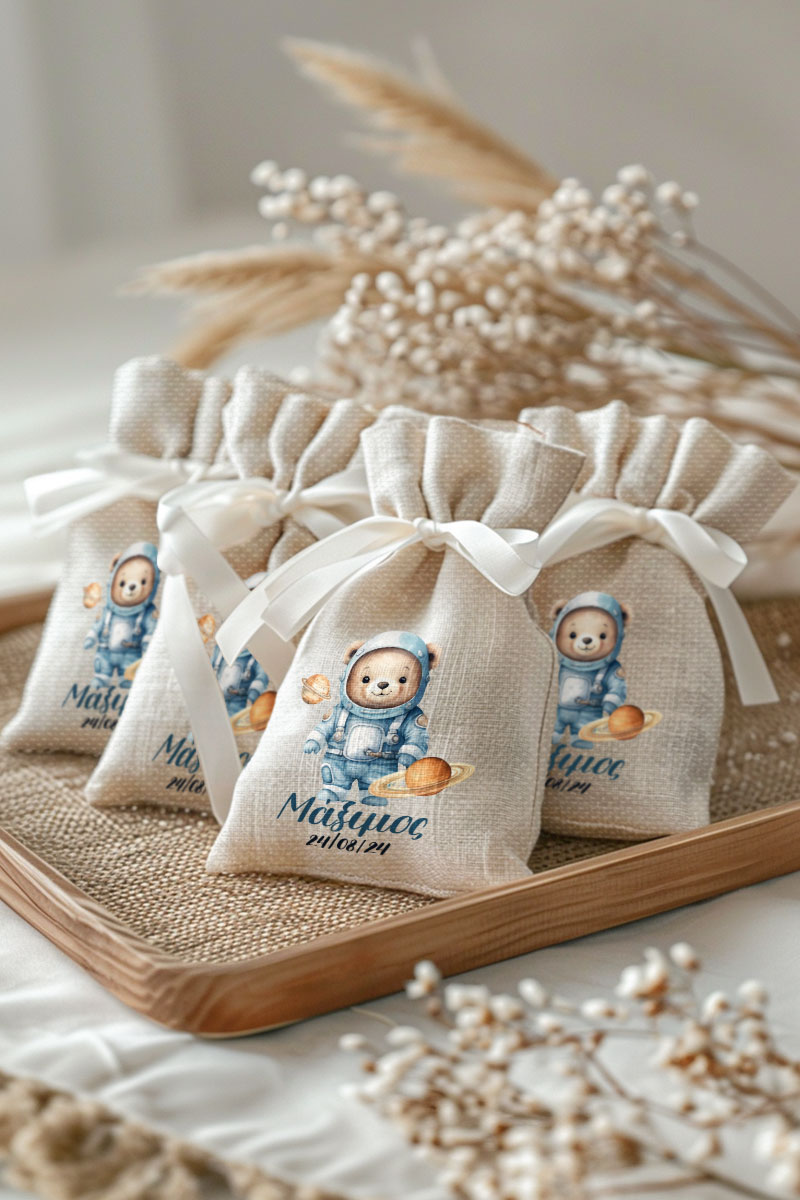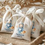 1.59€Μοντέρνες και Πρωτότυπες Μπομπονιέρες Βάπτισης με Πουγκί από Καμβά | Σετ Πουγκί, Εσωτερικό Τούλι & Κορδέλα Σατέν | Premium ποιότητα