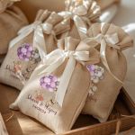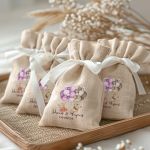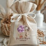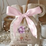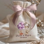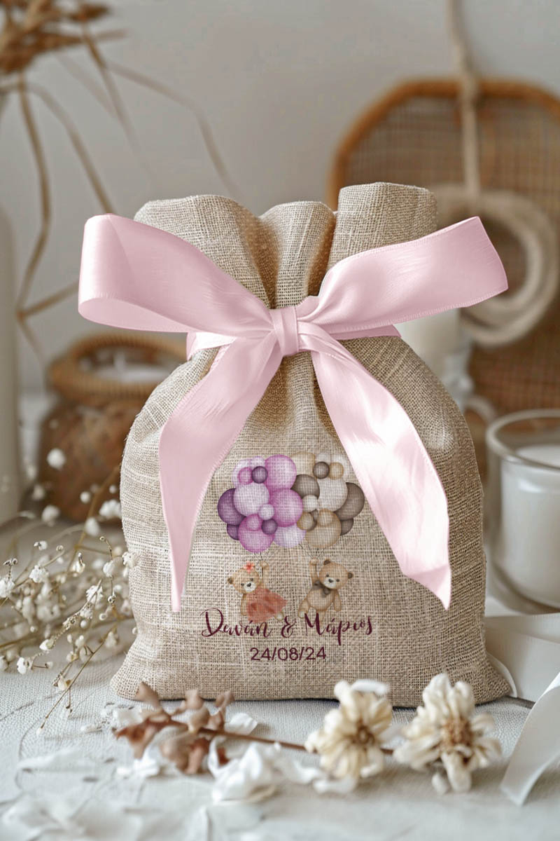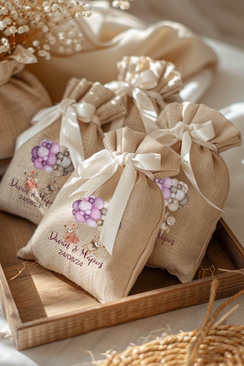• Κάθε σετ μπομπονιέρας περιλαμβάνει ένα προσωποποιημένο πουγκί από ύφανση καμβά, με δυνατότητα επιλογής χρώματος και σχεδίου.