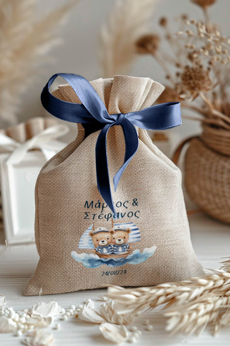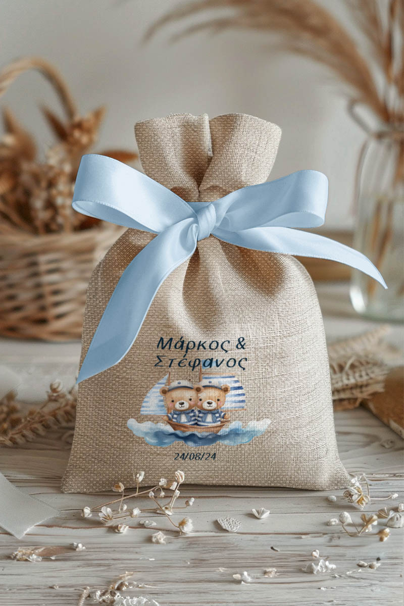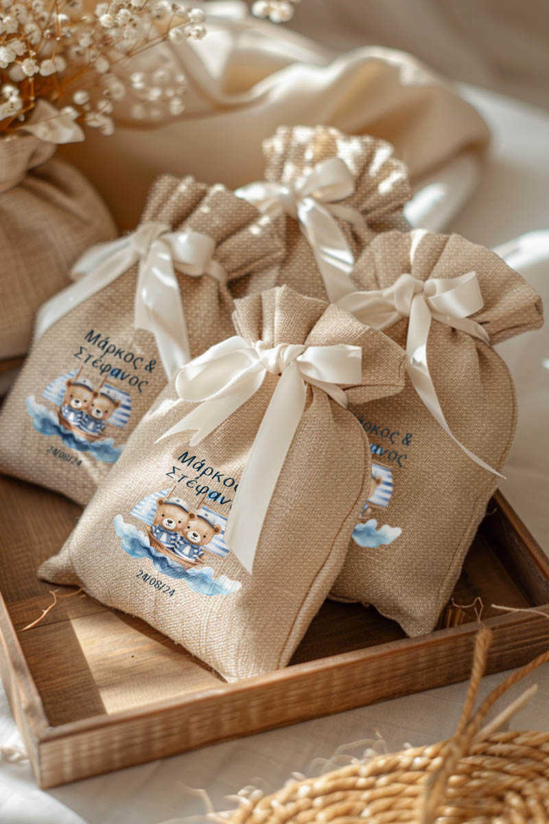 1.59€Μοντέρνες και Πρωτότυπες Μπομπονιέρες Βάπτισης με Πουγκί από Καμβά | Σετ Πουγκί, Εσωτερικό Τούλι & Κορδέλα Σατέν | Premium ποιότητα