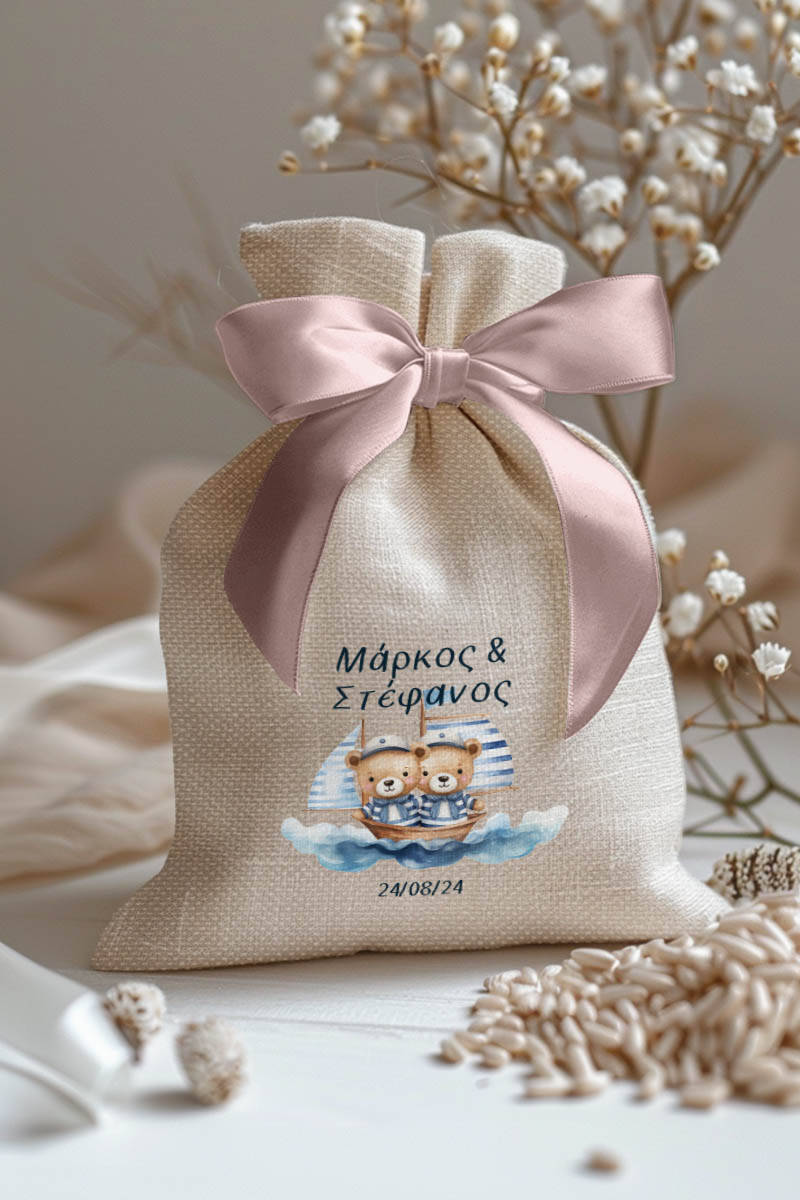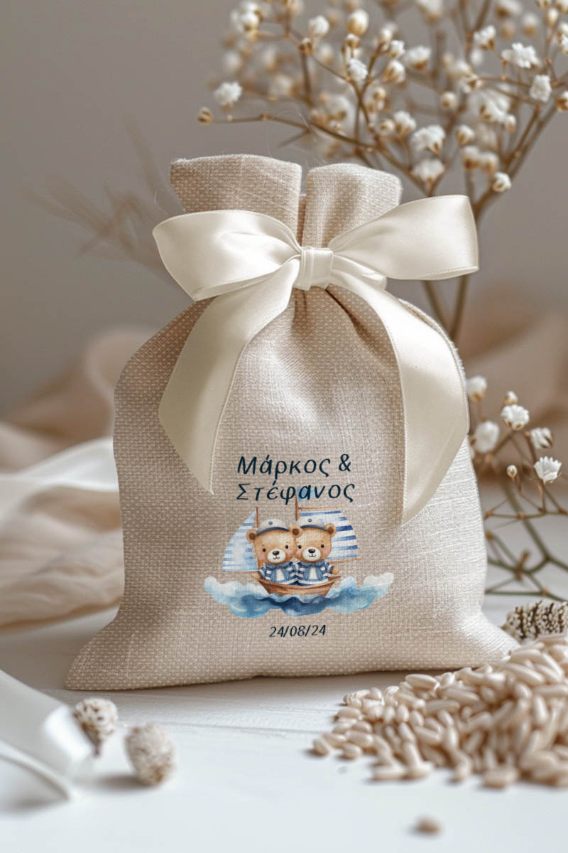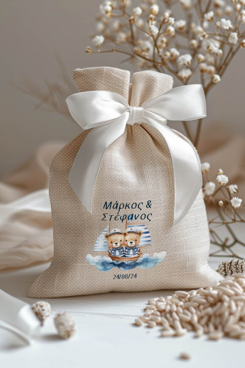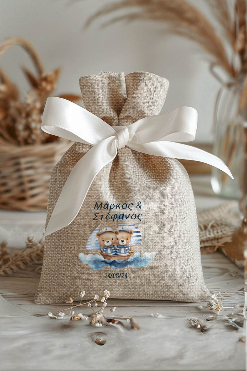 1.59€Μοντέρνες και Πρωτότυπες Μπομπονιέρες Βάπτισης με Πουγκί από Καμβά | Σετ Πουγκί, Εσωτερικό Τούλι & Κορδέλα Σατέν | Premium ποιότητα