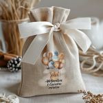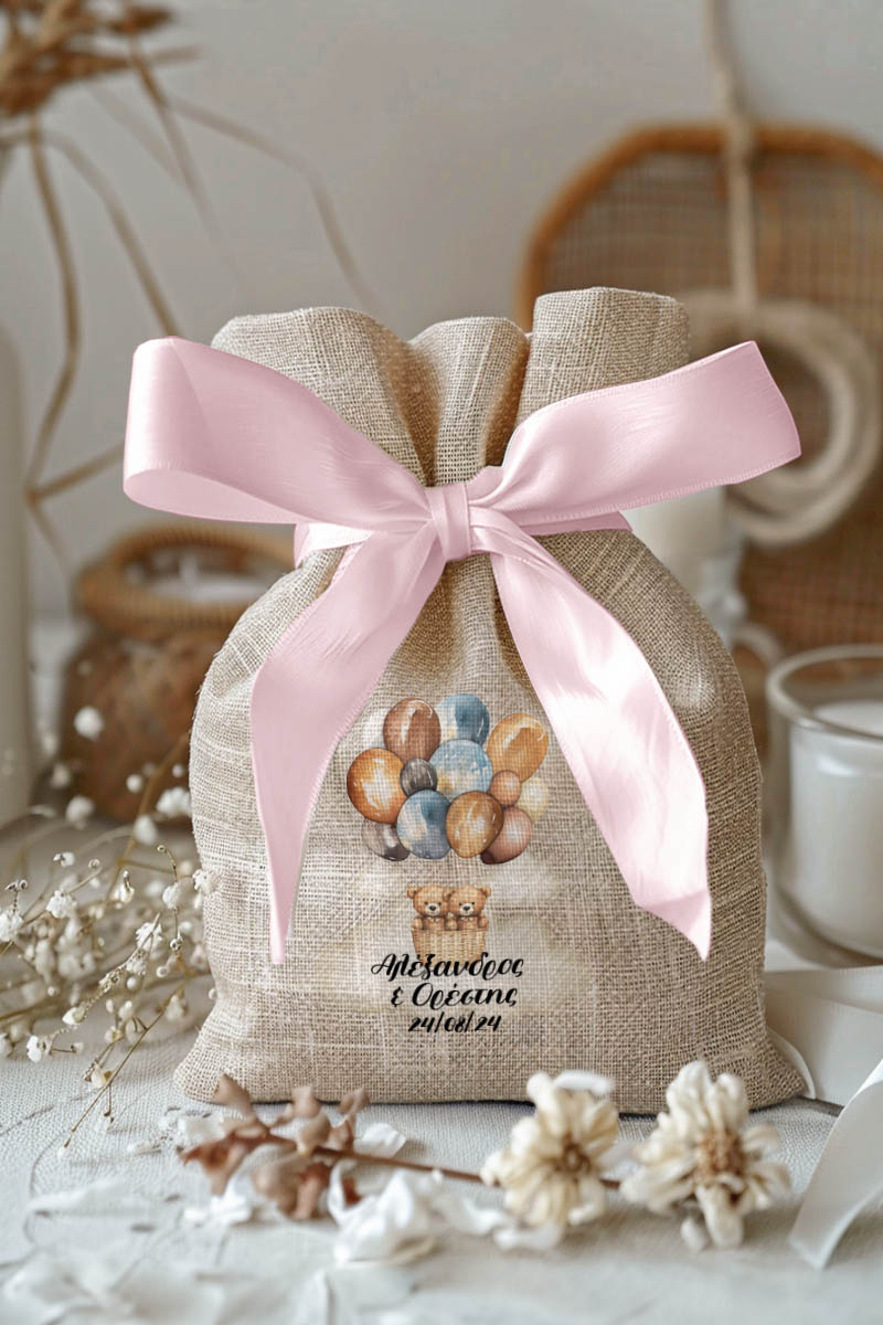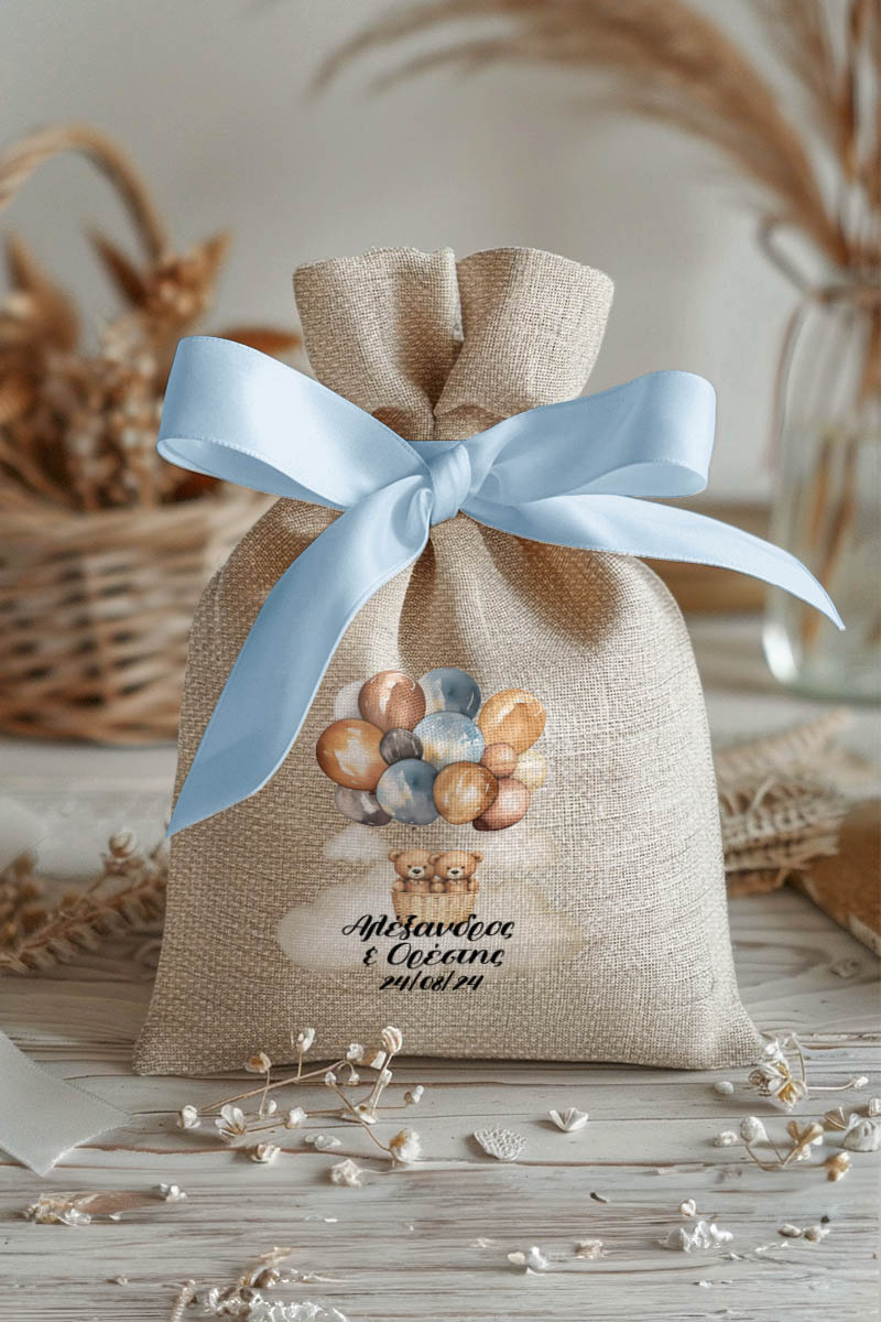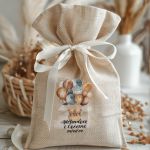 Μοντέρνες και Πρωτότυπες Μπομπονιέρες Βάπτισης με Πουγκί από Καμβά | Σετ Πουγκί, Εσωτερικό Τούλι & Κορδέλα Σατέν | Premium ποιότητα