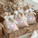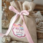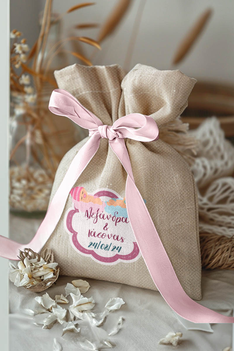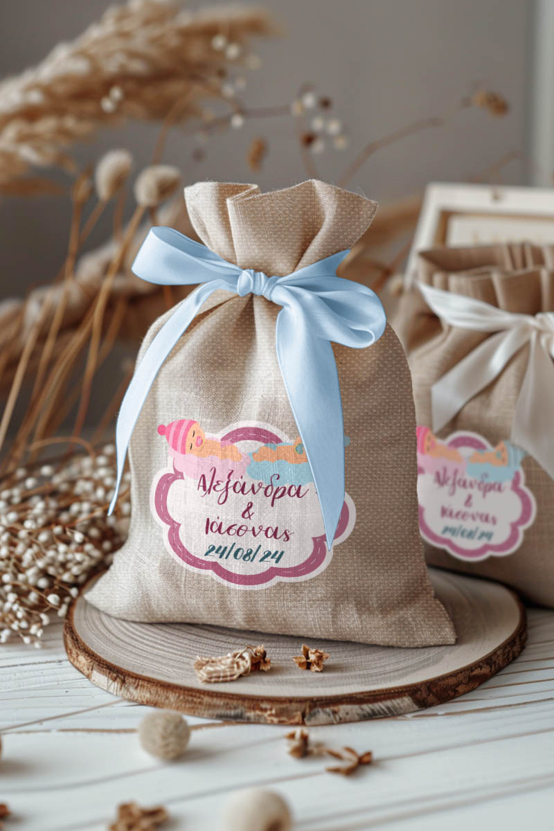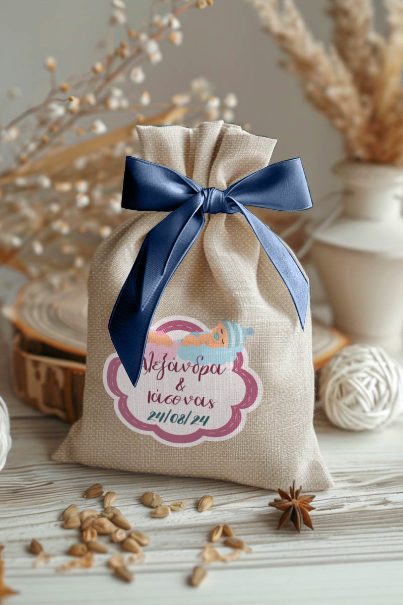 Μοντέρνες και Πρωτότυπες Μπομπονιέρες Βάπτισης με Πουγκί από Καμβά | Σετ Πουγκί, Εσωτερικό Τούλι & Κορδέλα Σατέν | Premium ποιότητα