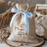 Μοντέρνες και Πρωτότυπες Μπομπονιέρες Βάπτισης με Πουγκί από Καμβά | Σετ Πουγκί, Εσωτερικό Τούλι & Κορδέλα Σατέν | Premium ποιότητα