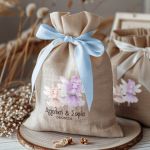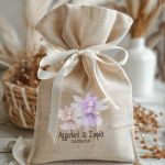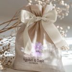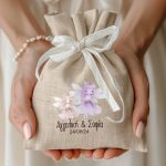 • Κάθε σετ μπομπονιέρας περιλαμβάνει ένα προσωποποιημένο πουγκί από ύφανση καμβά, με δυνατότητα επιλογής χρώματος και σχεδίου.