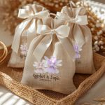 Μοντέρνες και Πρωτότυπες Μπομπονιέρες Βάπτισης με Πουγκί από Καμβά | Σετ Πουγκί, Εσωτερικό Τούλι & Κορδέλα Σατέν | Premium ποιότητα