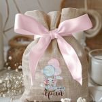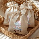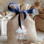 Μοντέρνες και Πρωτότυπες Μπομπονιέρες Βάπτισης με Πουγκί από Καμβά | Σετ Πουγκί, Εσωτερικό Τούλι & Κορδέλα Σατέν | Premium ποιότητα