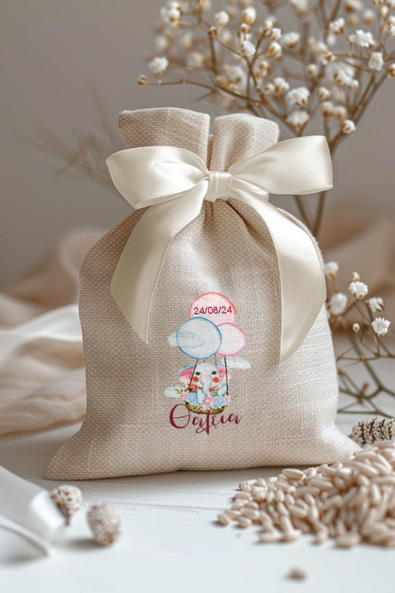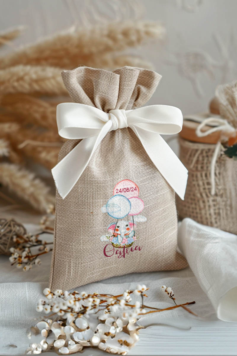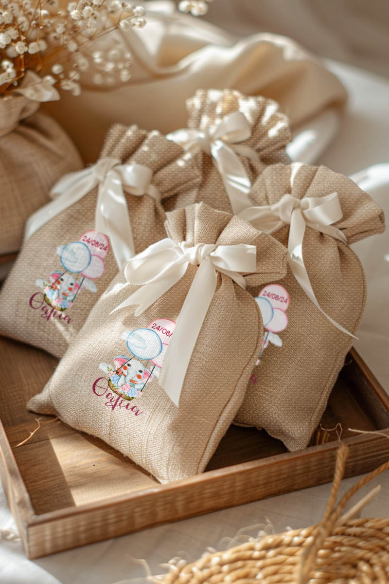 1.59€Μοντέρνες και Πρωτότυπες Μπομπονιέρες Βάπτισης με Πουγκί από Καμβά | Σετ Πουγκί, Εσωτερικό Τούλι & Κορδέλα Σατέν | Premium ποιότητα