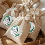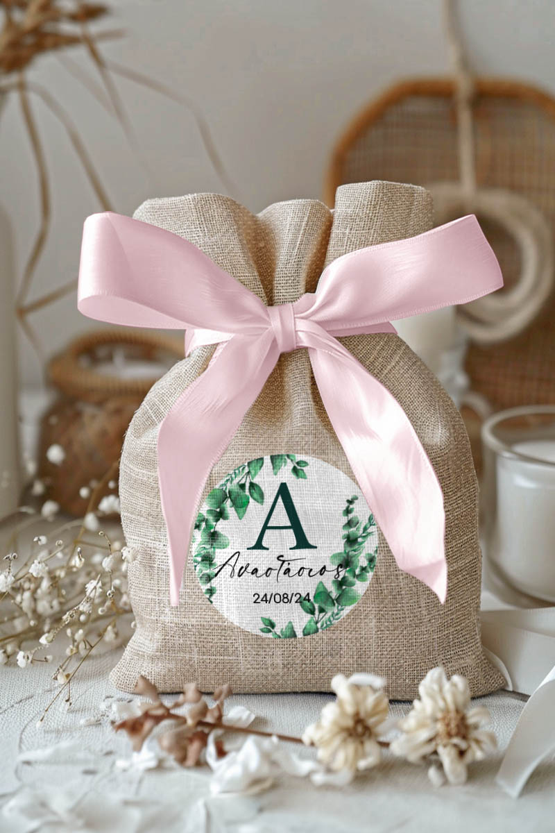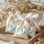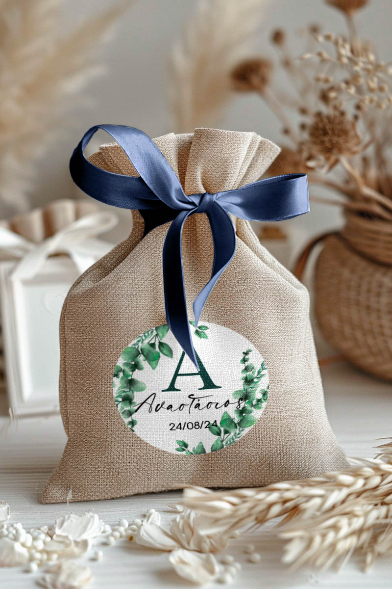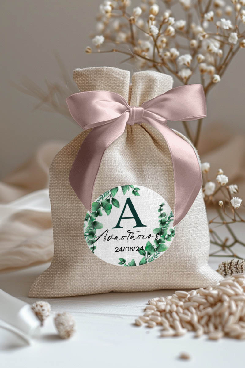 - Κάθε σετ μπομπονιέρας περιλαμβάνει ένα προσωποποιημένο πουγκί από ύφανση καμβά, με δυνατότητα επιλογής χρώματος και σχεδίου.