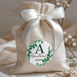 Μπομπονιέρες Βάπτισης Πουγκί σε Εκρού Χρώμα με Σχέδιο Καλοκαιρινό Πράσινο