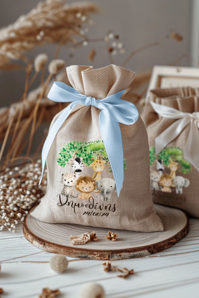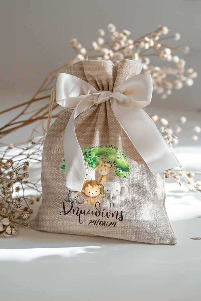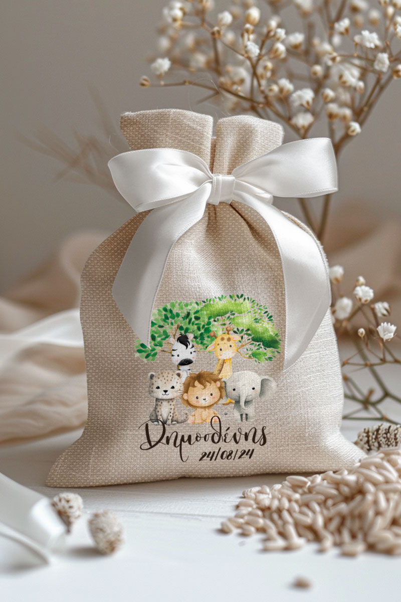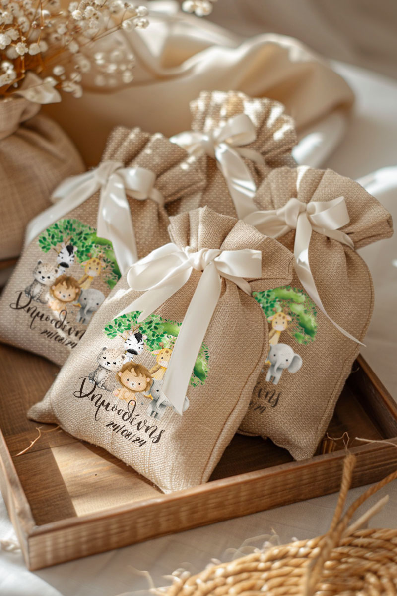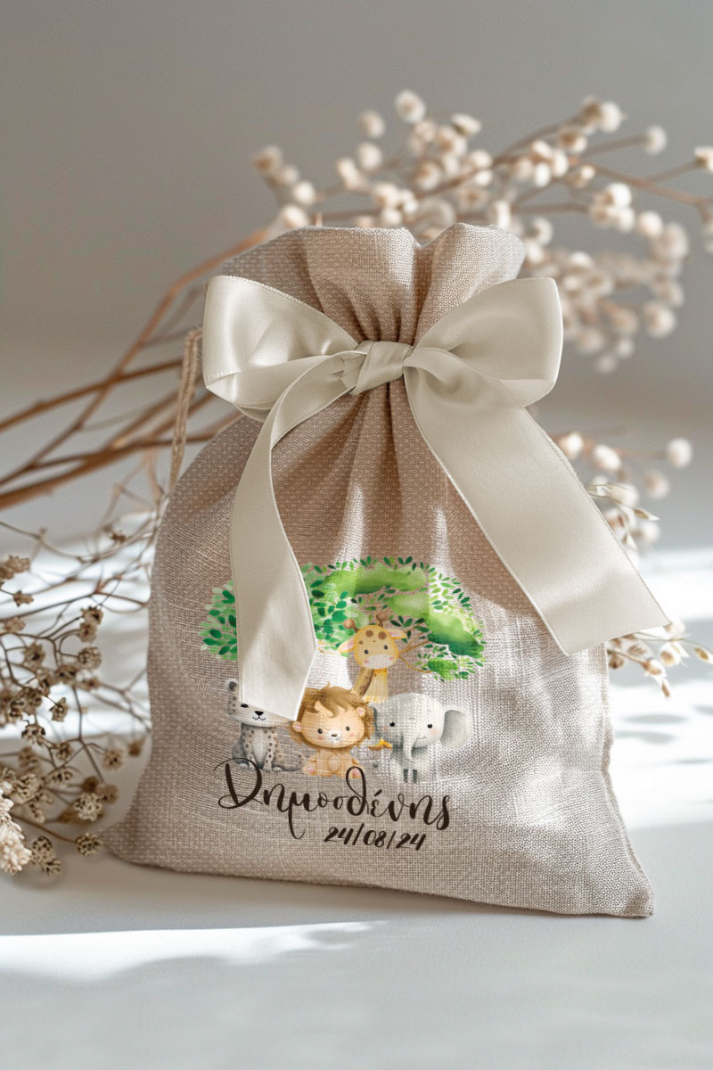 1.59€Μοντέρνες και Πρωτότυπες Μπομπονιέρες Βάπτισης με Πουγκί από Καμβά | Σετ Πουγκί, Εσωτερικό Τούλι & Κορδέλα Σατέν | Premium ποιότητα