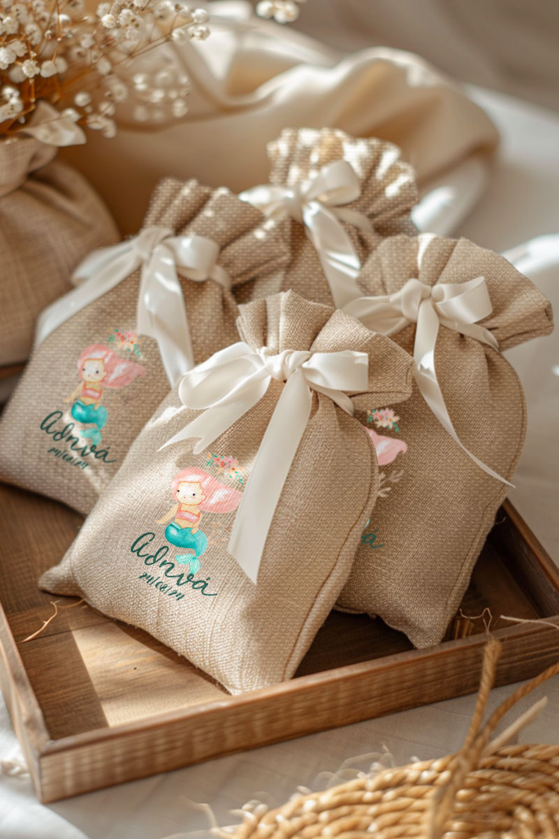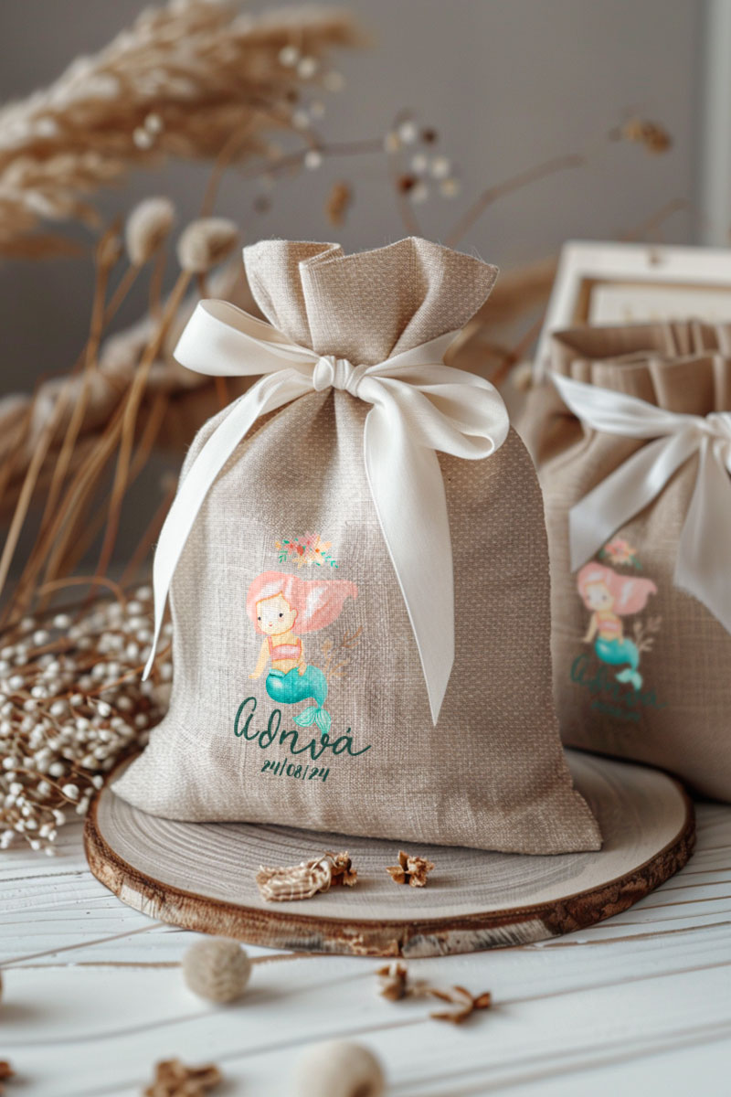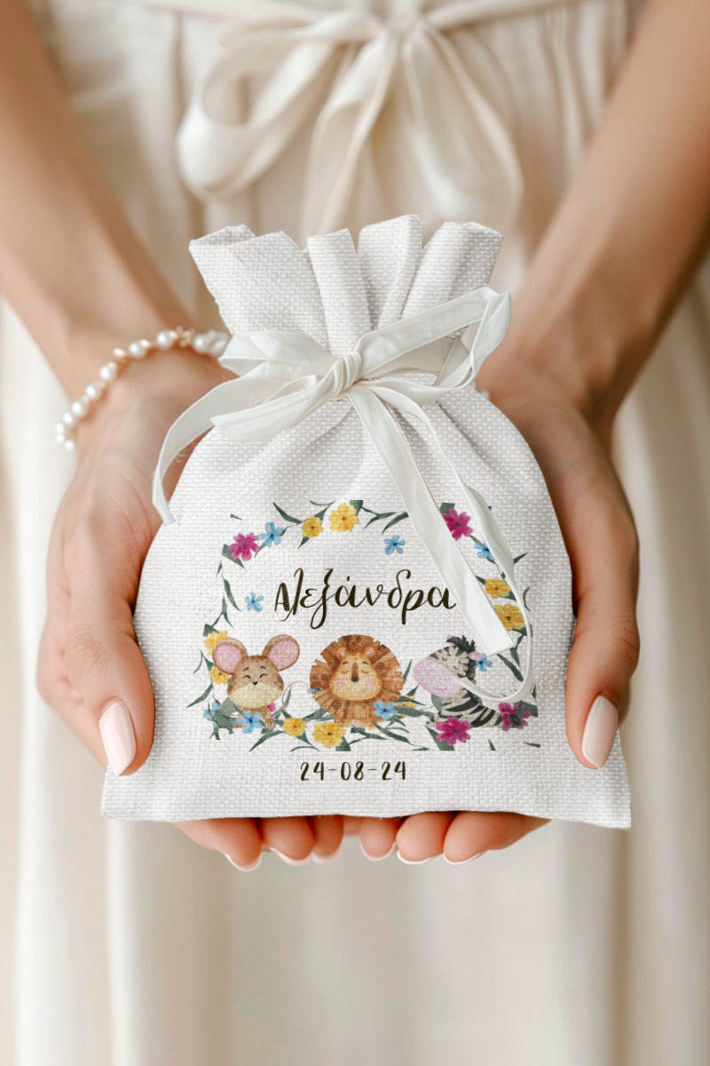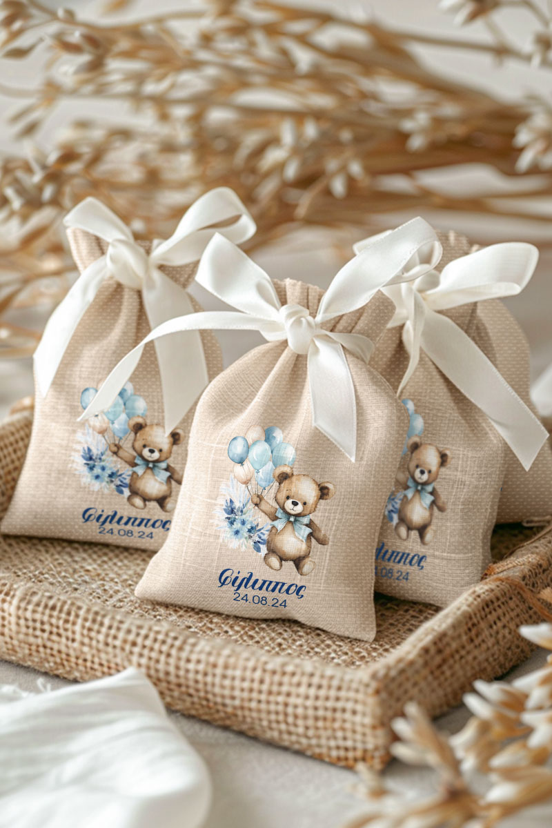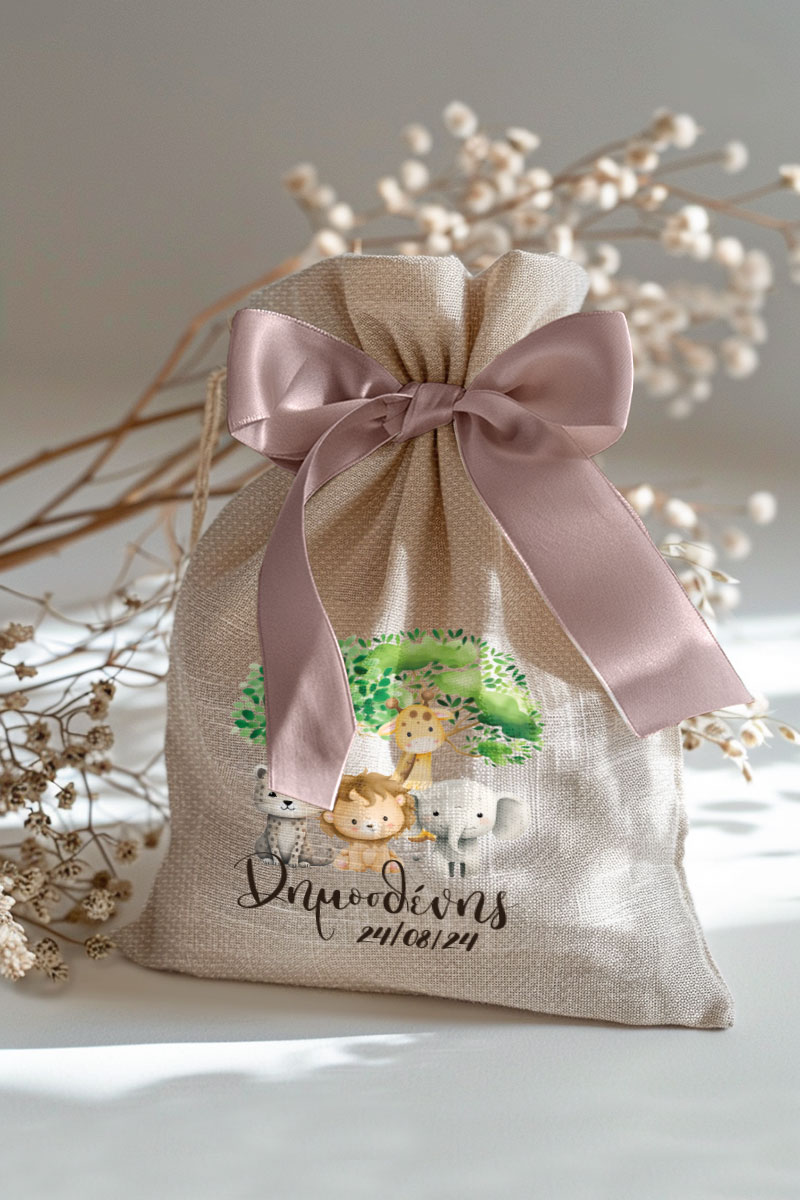 1.59€Μοντέρνες και Πρωτότυπες Μπομπονιέρες Βάπτισης με Πουγκί από Καμβά | Σετ Πουγκί, Εσωτερικό Τούλι & Κορδέλα Σατέν | Premium ποιότητα