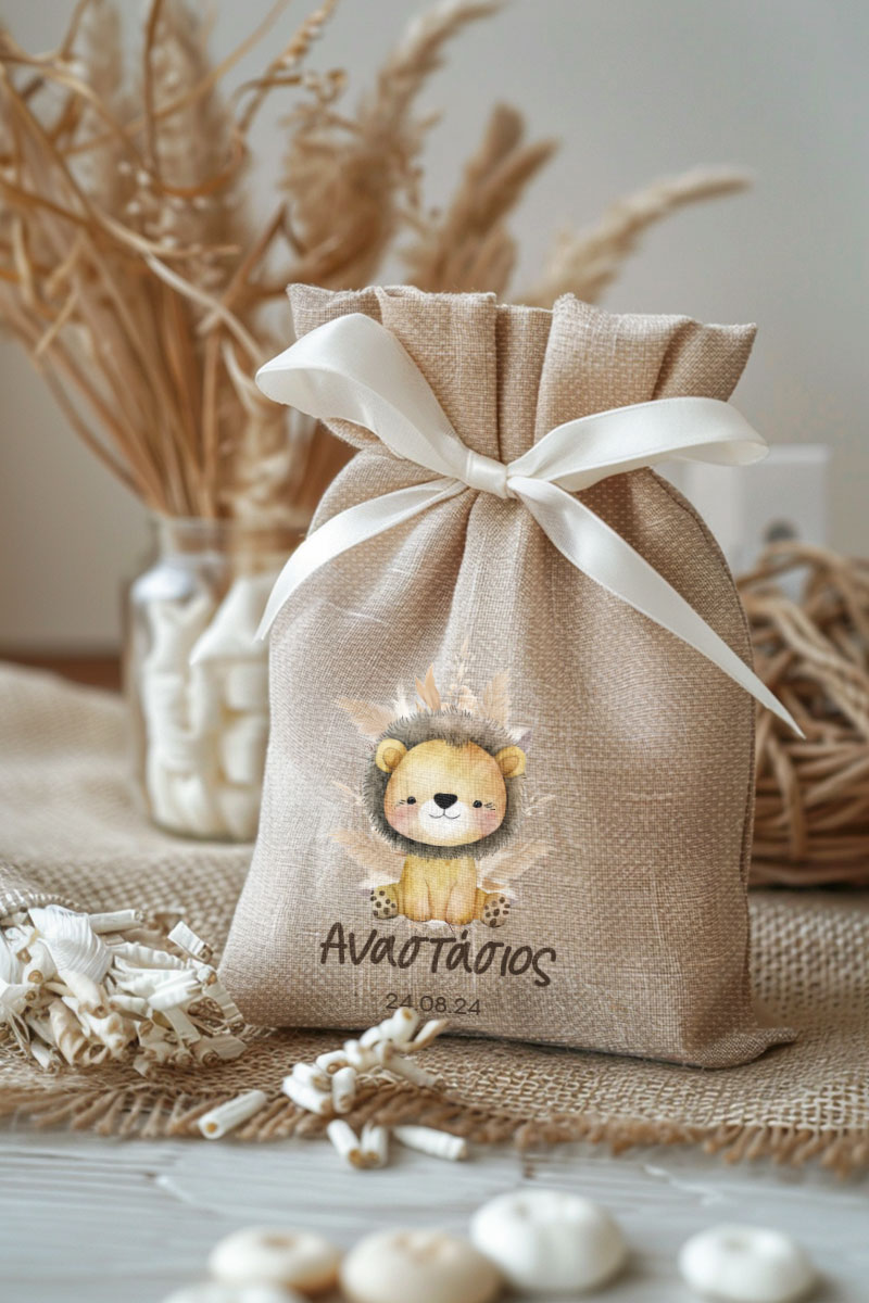 1.59€Μοντέρνες και Πρωτότυπες Μπομπονιέρες Βάπτισης με Πουγκί από Καμβά | Σετ Πουγκί, Εσωτερικό Τούλι & Κορδέλα Σατέν | Premium ποιότητα