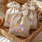 • Κάθε σετ μπομπονιέρας περιλαμβάνει ένα προσωποποιημένο πουγκί από ύφανση καμβά, με δυνατότητα επιλογής χρώματος και σχεδίου.