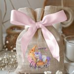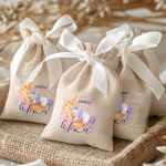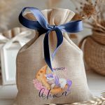 Μοντέρνες και Πρωτότυπες Μπομπονιέρες Βάπτισης με Πουγκί από Καμβά | Σετ Πουγκί, Εσωτερικό Τούλι & Κορδέλα Σατέν | Premium ποιότητα