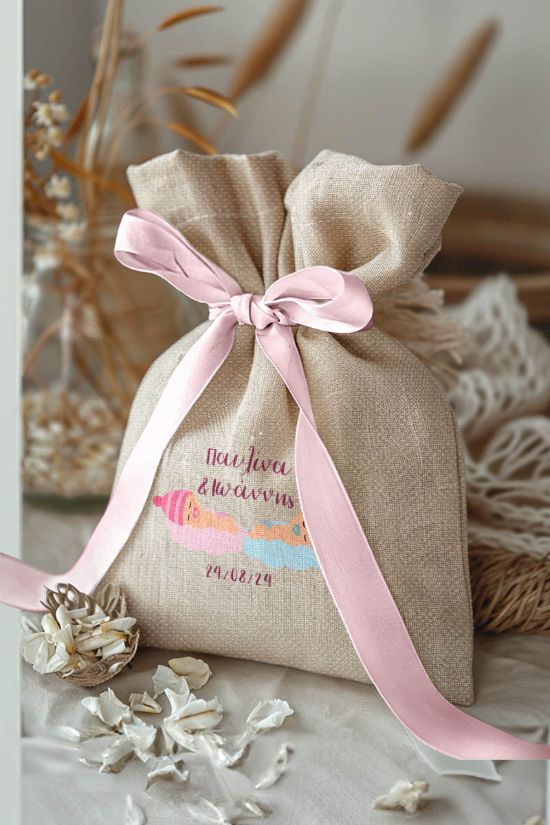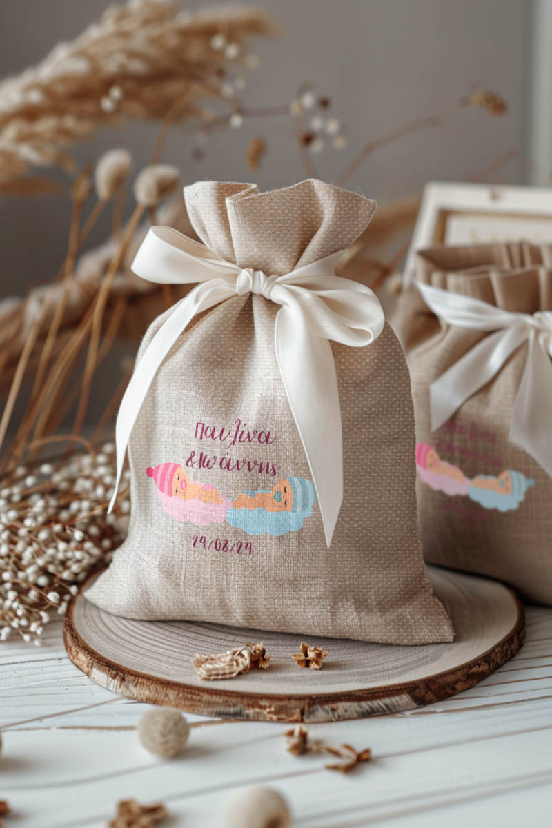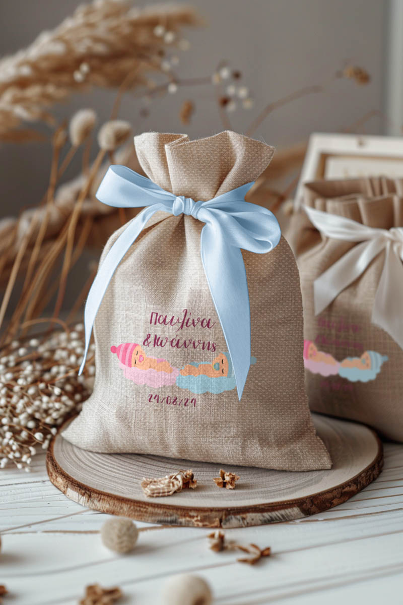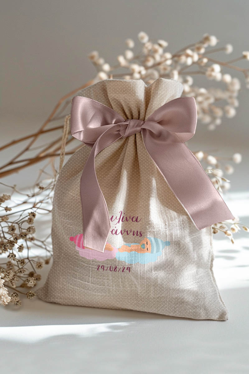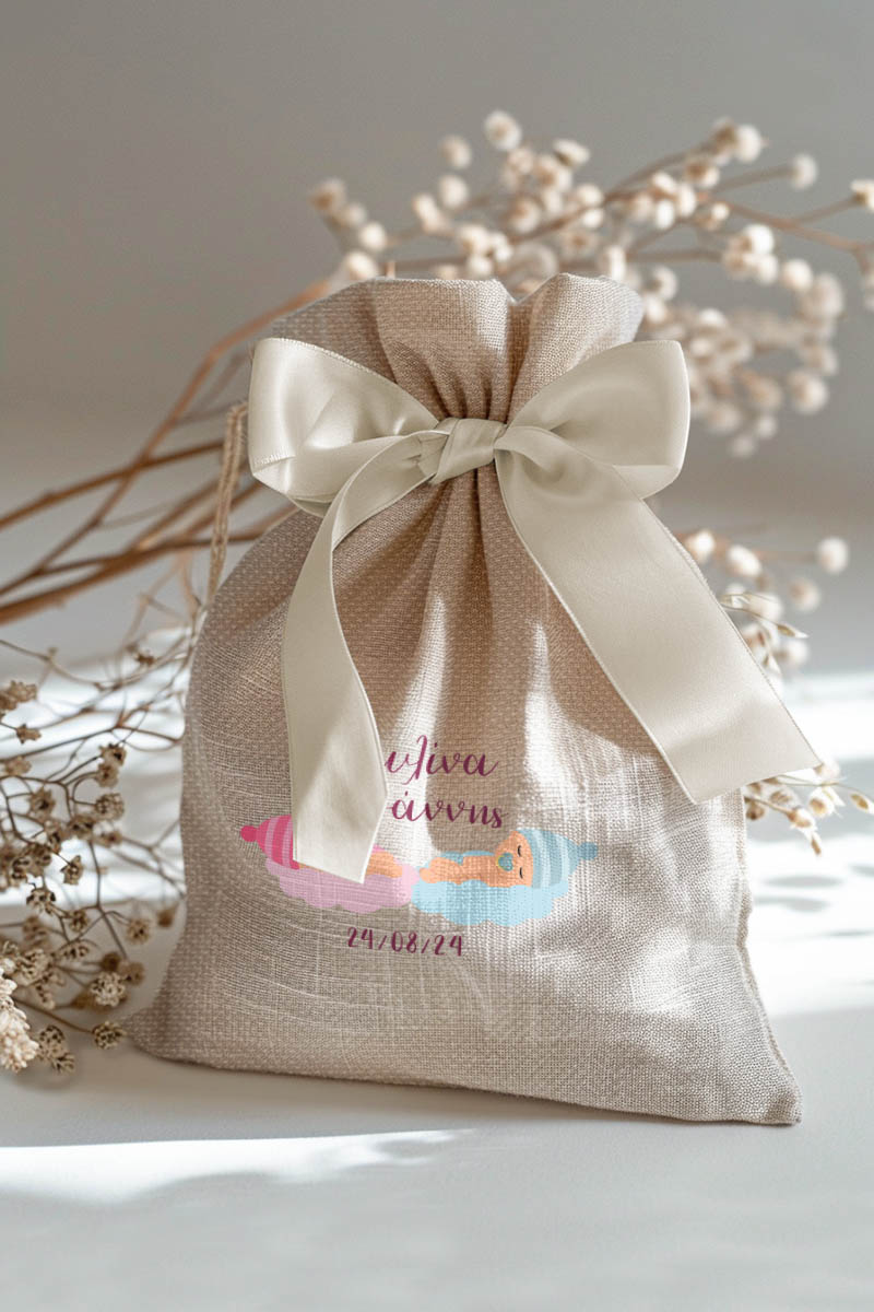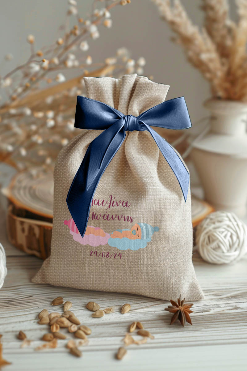 1.59€Μοντέρνες και Πρωτότυπες Μπομπονιέρες Βάπτισης με Πουγκί από Καμβά | Σετ Πουγκί, Εσωτερικό Τούλι & Κορδέλα Σατέν | Premium ποιότητα