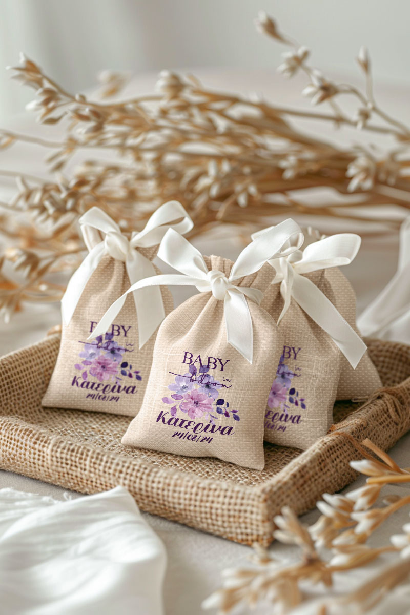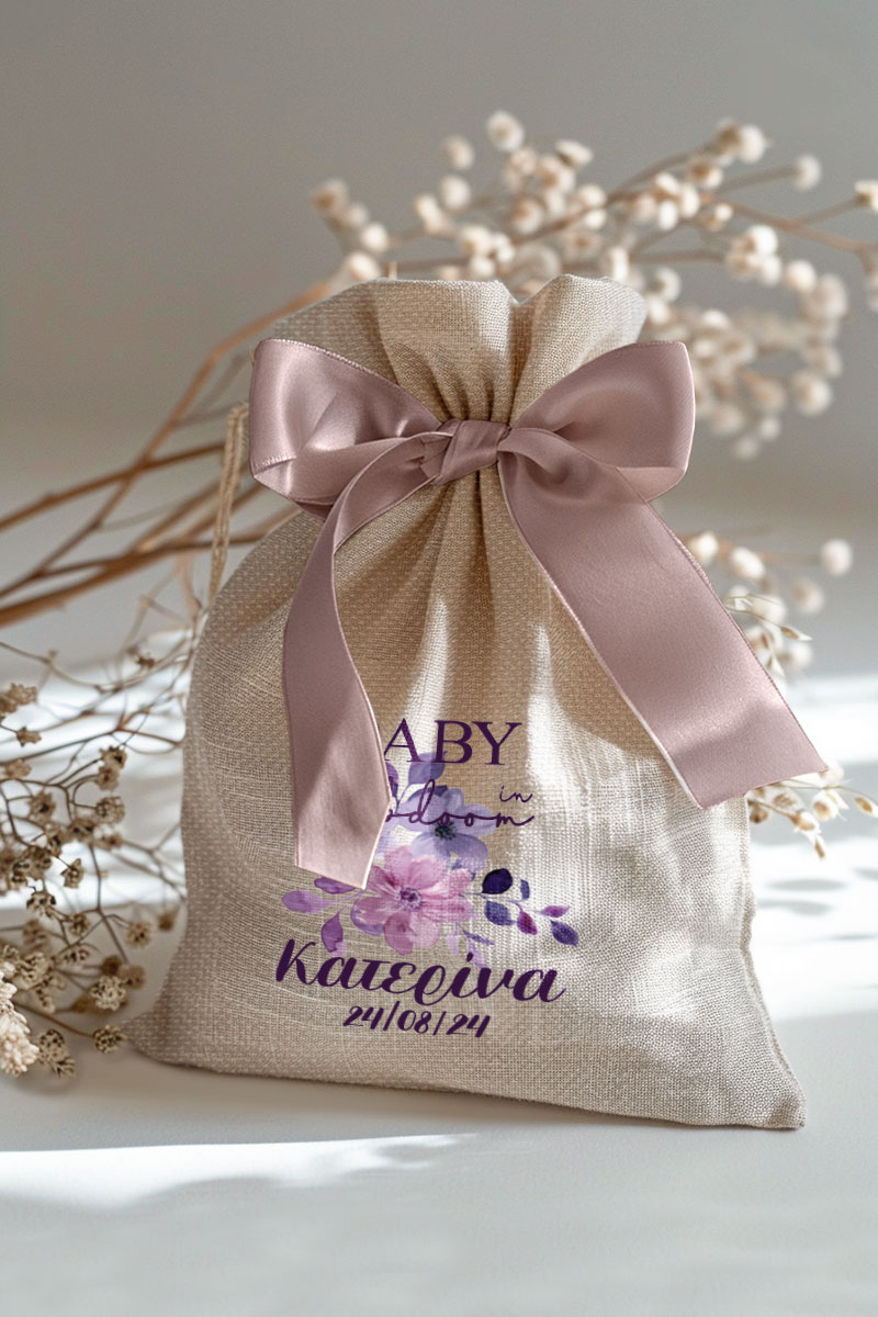 1.59€Μοντέρνες και Πρωτότυπες Μπομπονιέρες Βάπτισης με Πουγκί από Καμβά | Σετ Πουγκί, Εσωτερικό Τούλι & Κορδέλα Σατέν | Premium ποιότητα