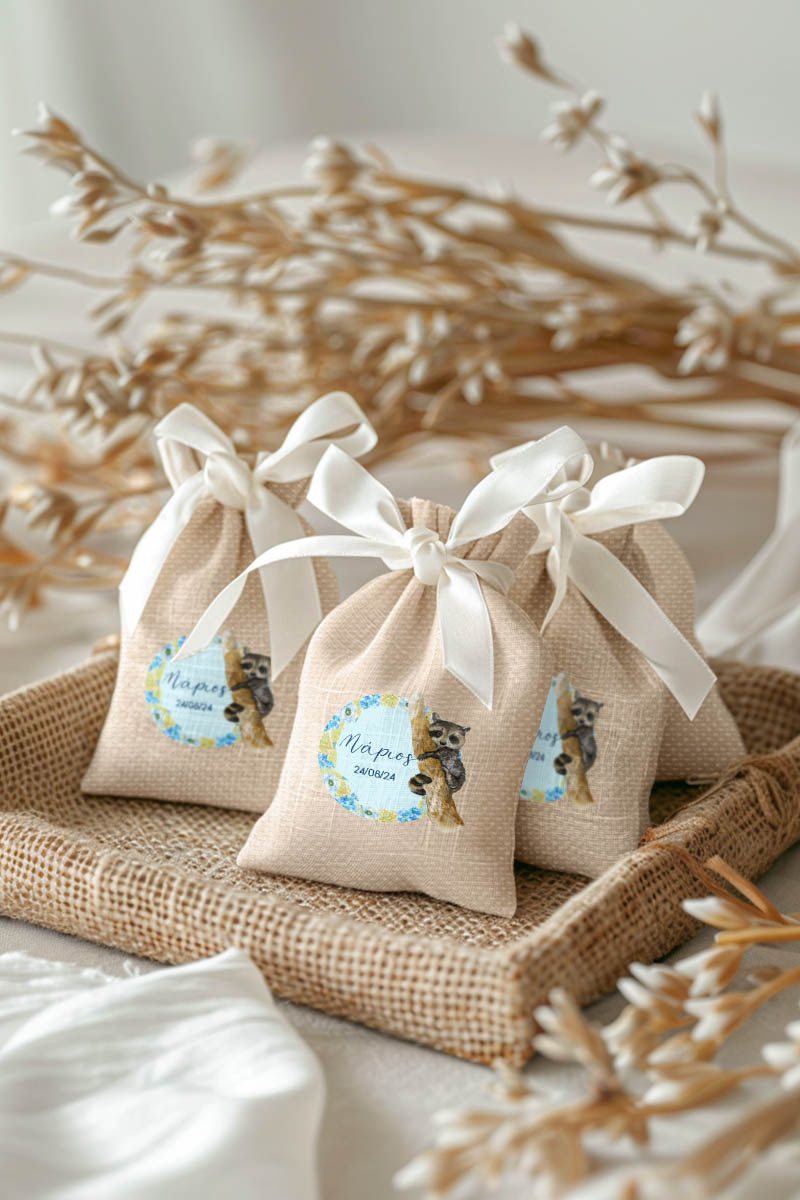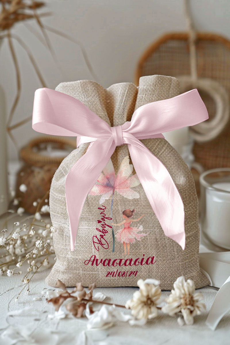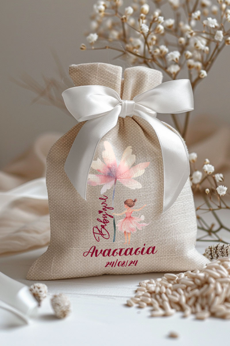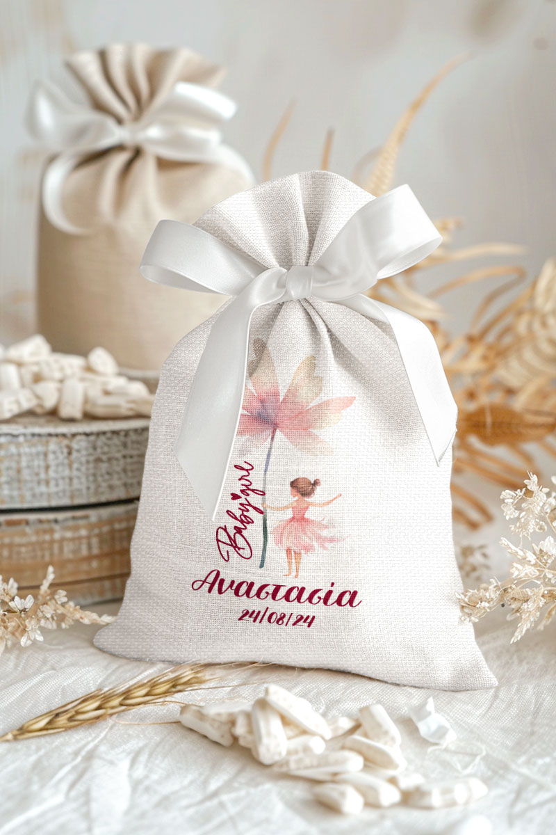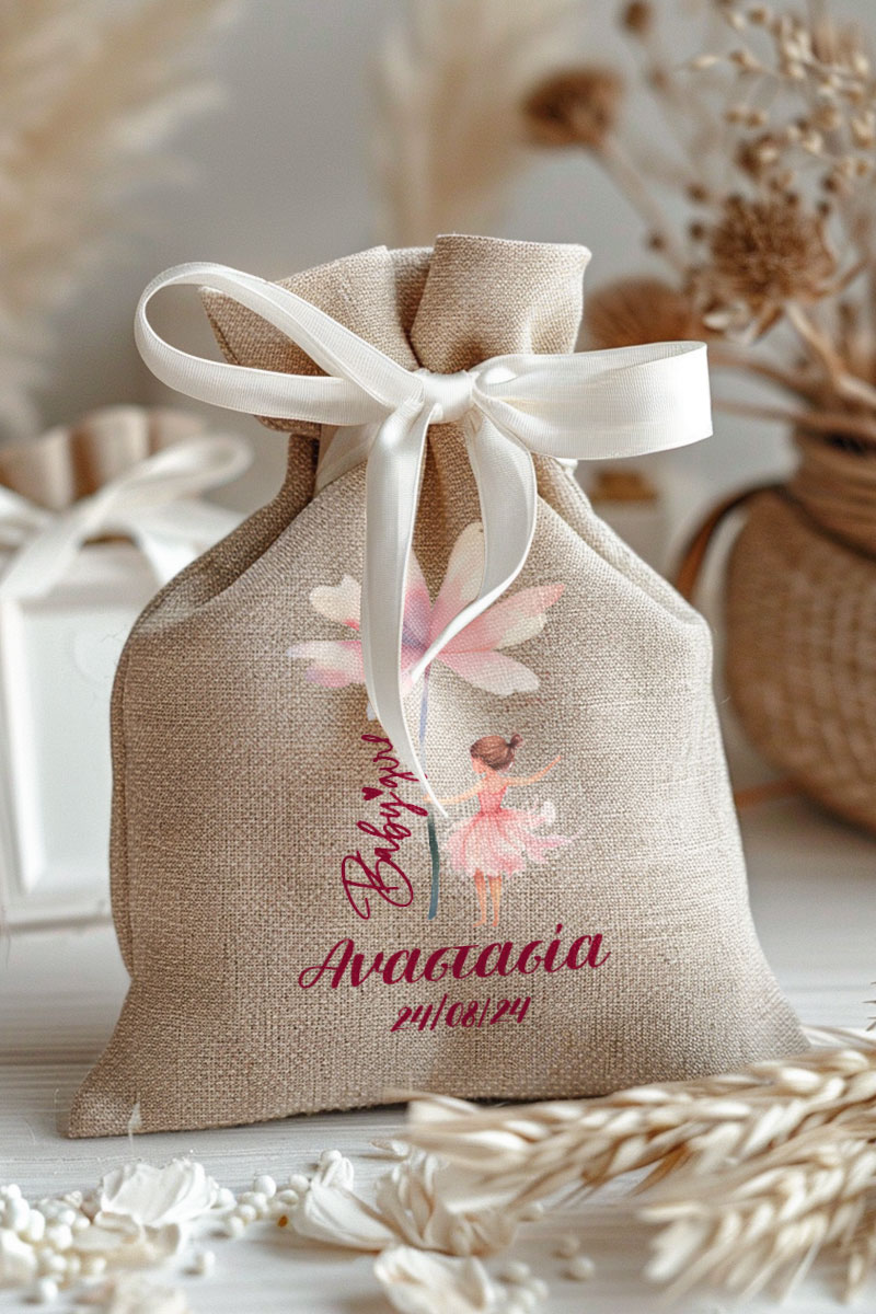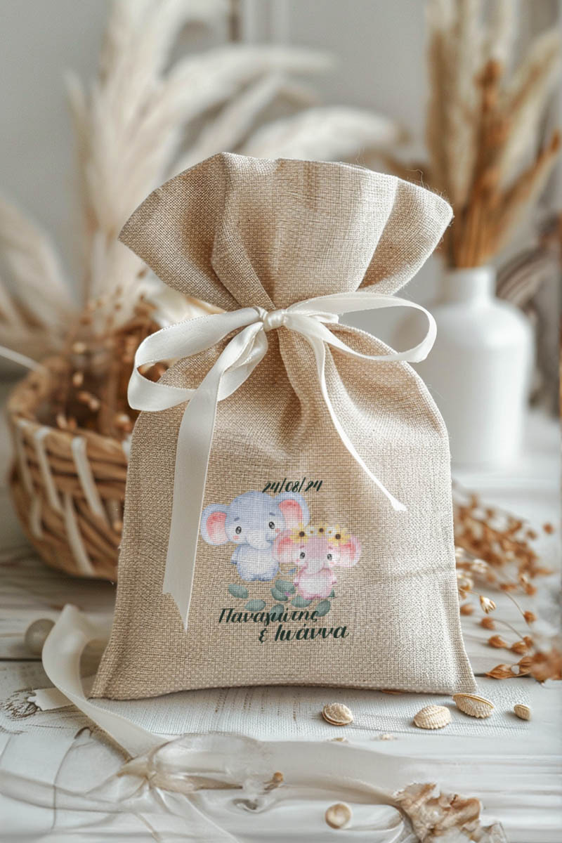 1.59€Μοντέρνες και Πρωτότυπες Μπομπονιέρες Βάπτισης με Πουγκί από Καμβά | Σετ Πουγκί, Εσωτερικό Τούλι & Κορδέλα Σατέν | Premium ποιότητα