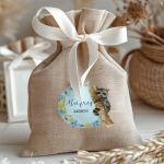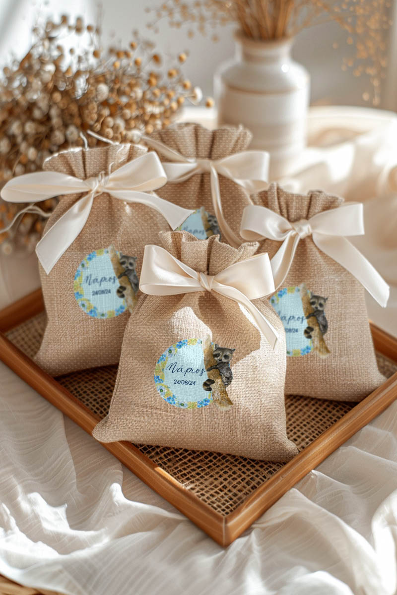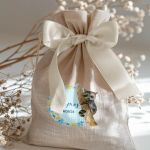 Μοντέρνες και Πρωτότυπες Μπομπονιέρες Βάπτισης με Πουγκί από Καμβά | Σετ Πουγκί, Εσωτερικό Τούλι & Κορδέλα Σατέν | Premium ποιότητα