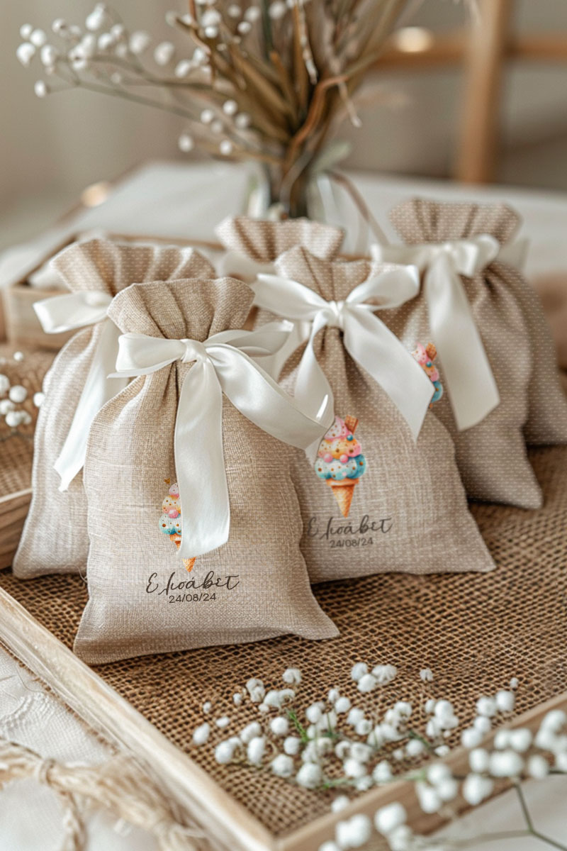 1.59€Μοντέρνες και Πρωτότυπες Μπομπονιέρες Βάπτισης με Πουγκί από Καμβά | Σετ Πουγκί, Εσωτερικό Τούλι & Κορδέλα Σατέν | Premium ποιότητα