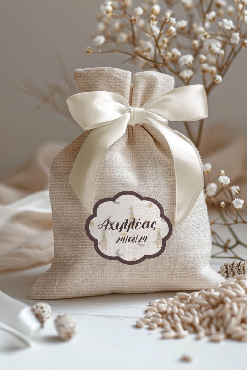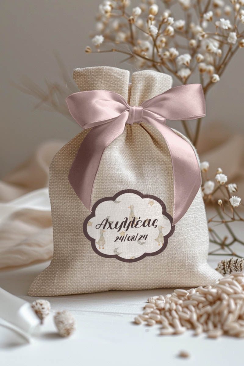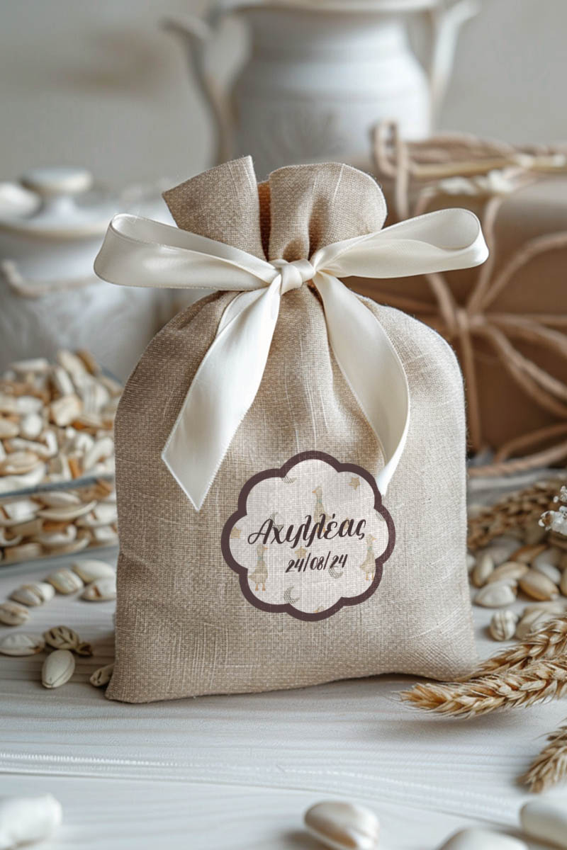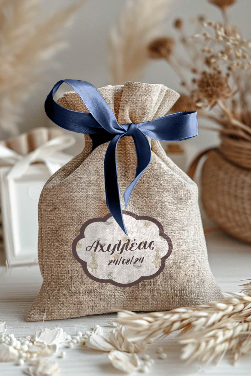 1.59€Μοντέρνες και Πρωτότυπες Μπομπονιέρες Βάπτισης με Πουγκί από Καμβά | Σετ Πουγκί, Εσωτερικό Τούλι & Κορδέλα Σατέν | Premium ποιότητα
