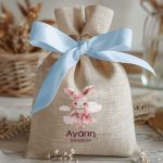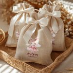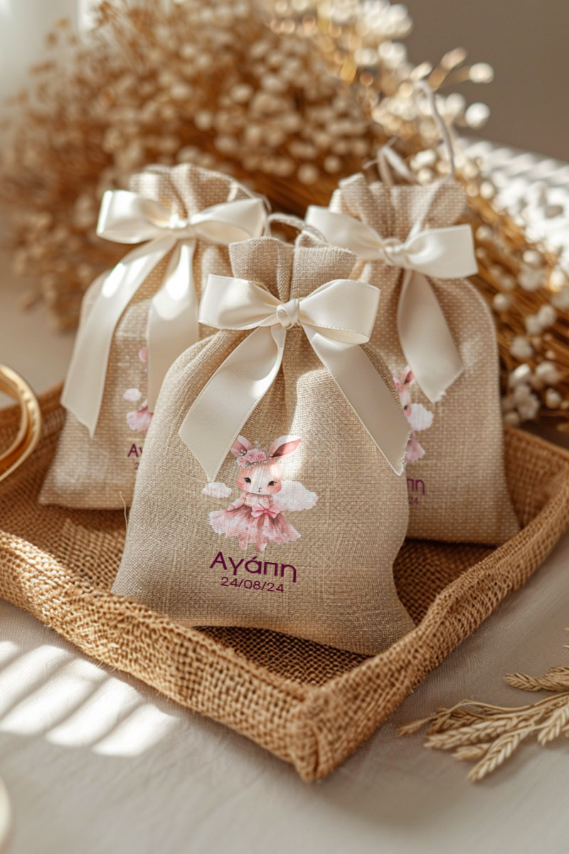 Μοντέρνες και Πρωτότυπες Μπομπονιέρες Βάπτισης με Πουγκί από Καμβά | Σετ Πουγκί, Εσωτερικό Τούλι & Κορδέλα Σατέν | Premium ποιότητα