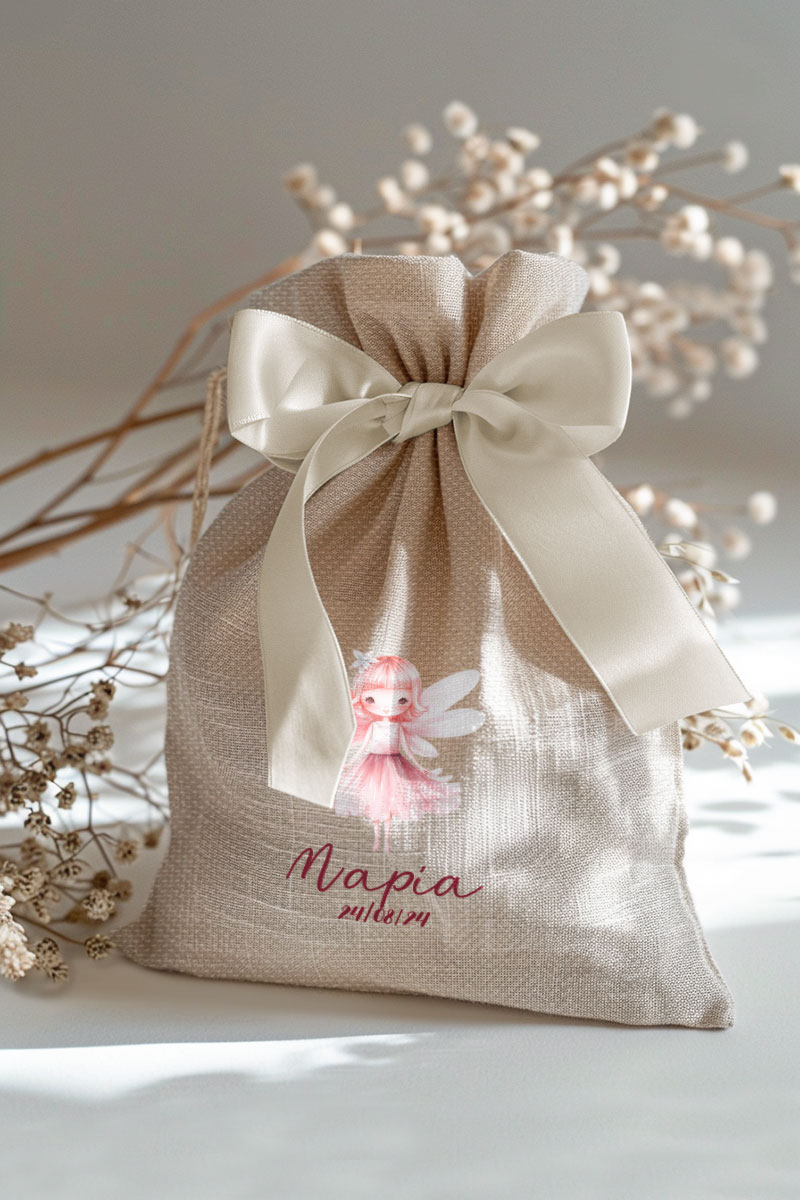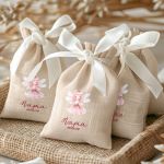 1.59€Μοντέρνες και Πρωτότυπες Μπομπονιέρες Βάπτισης με Πουγκί από Καμβά | Σετ Πουγκί, Εσωτερικό Τούλι & Κορδέλα Σατέν | Premium ποιότητα