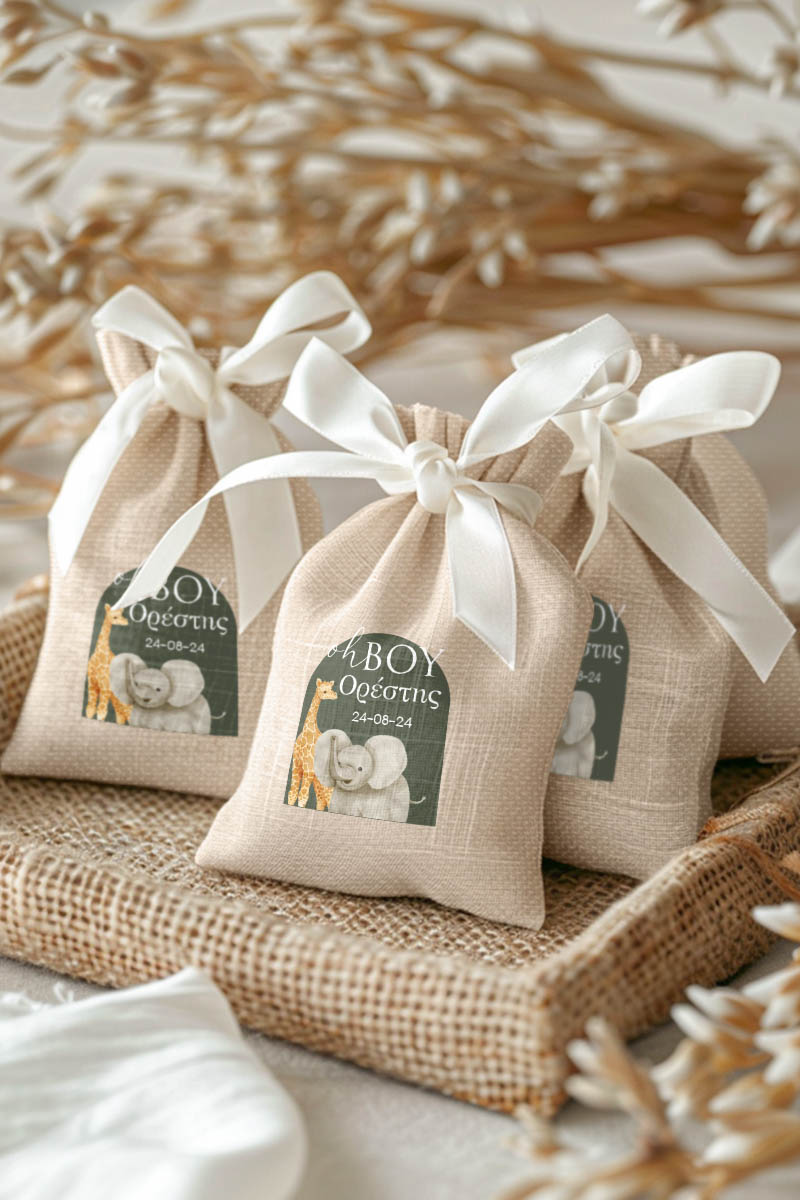 1.59€Μοντέρνες και Πρωτότυπες Μπομπονιέρες Βάπτισης με Πουγκί από Καμβά | Σετ Πουγκί, Εσωτερικό Τούλι & Κορδέλα Σατέν | Premium ποιότητα