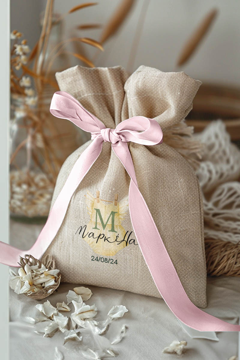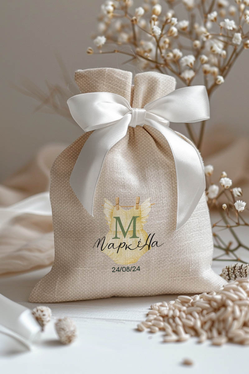 1.59€Μοντέρνες και Πρωτότυπες Μπομπονιέρες Βάπτισης με Πουγκί από Καμβά | Σετ Πουγκί, Εσωτερικό Τούλι & Κορδέλα Σατέν | Premium ποιότητα