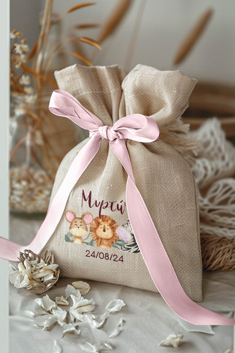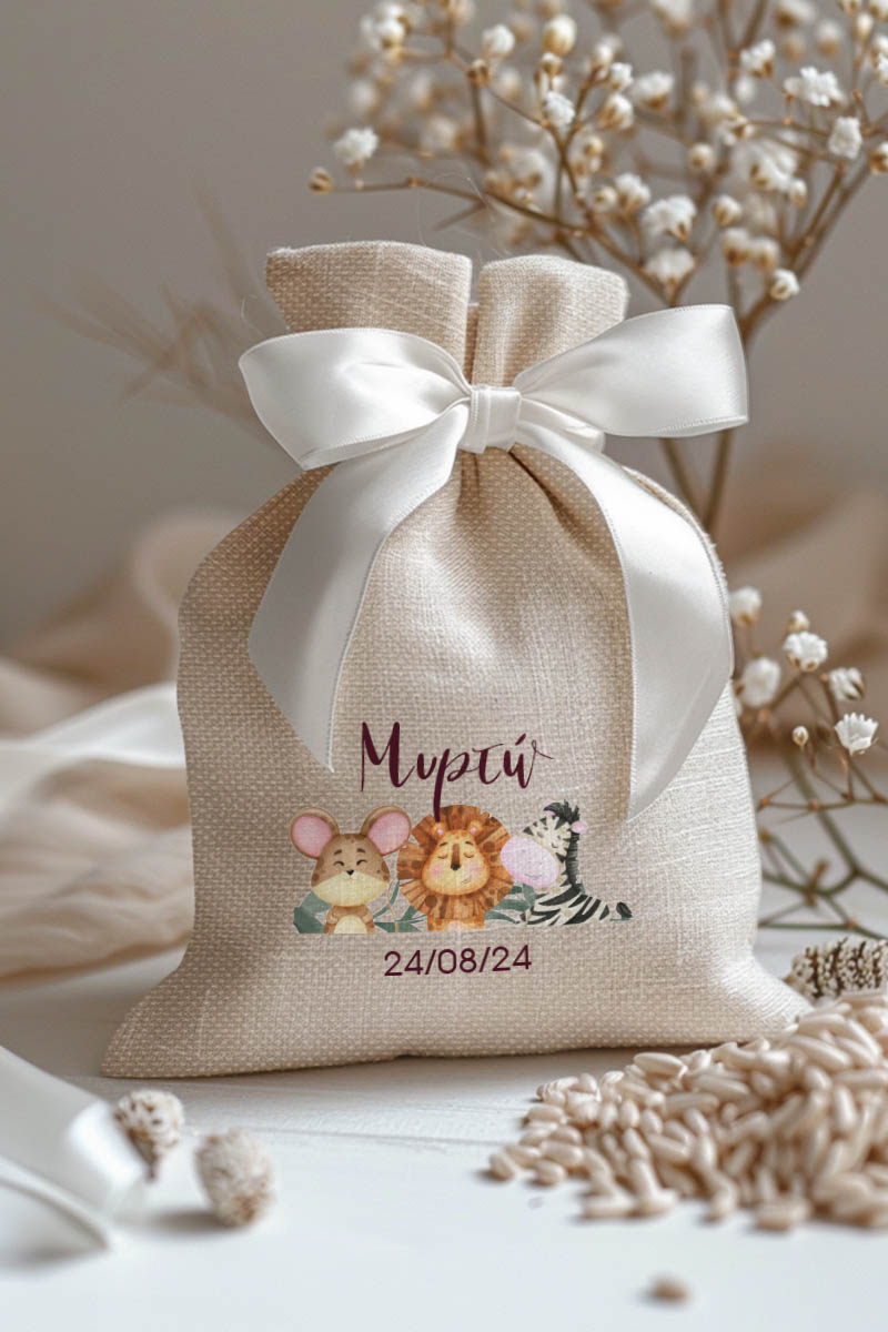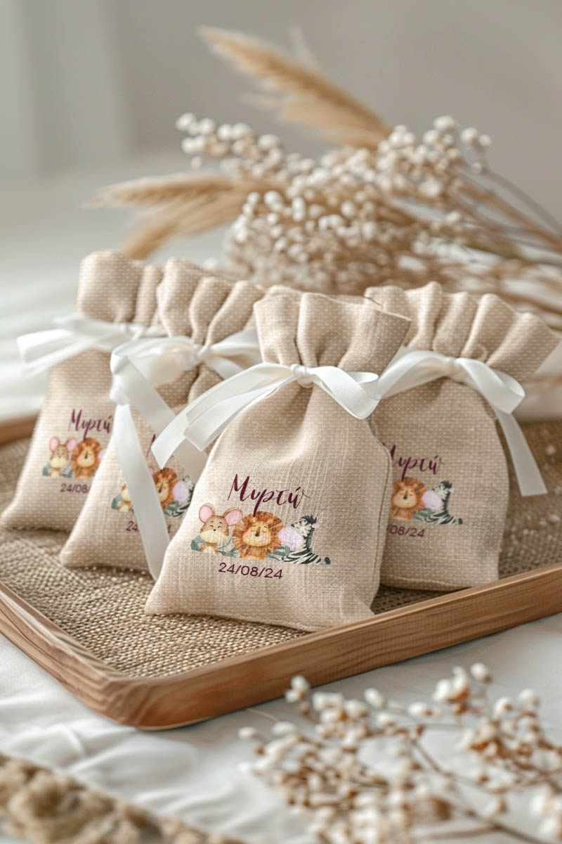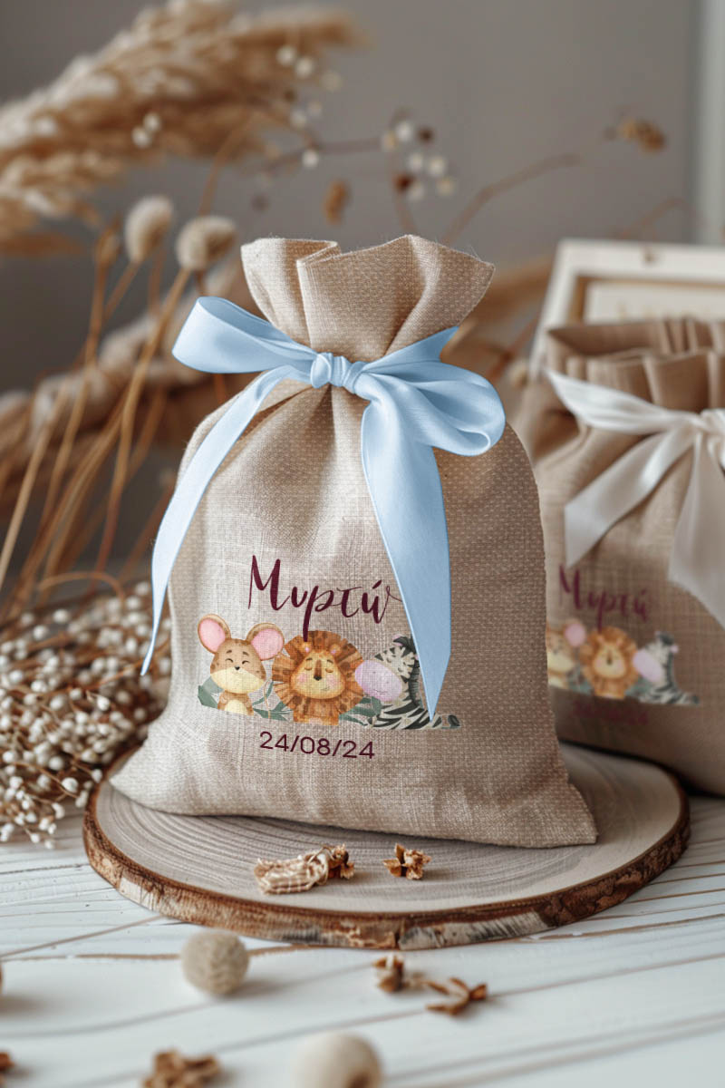 1.59€Μοντέρνες και Πρωτότυπες Μπομπονιέρες Βάπτισης με Πουγκί από Καμβά | Σετ Πουγκί, Εσωτερικό Τούλι & Κορδέλα Σατέν | Premium ποιότητα