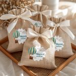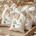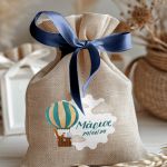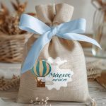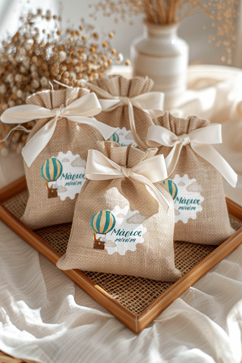 Μοντέρνες και Πρωτότυπες Μπομπονιέρες Βάπτισης με Πουγκί από Καμβά | Σετ Πουγκί, Εσωτερικό Τούλι & Κορδέλα Σατέν | Premium ποιότητα