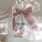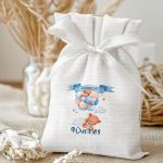 Μοντέρνες και Πρωτότυπες Μπομπονιέρες Βάπτισης με Πουγκί από Καμβά | Σετ Πουγκί, Εσωτερικό Τούλι & Κορδέλα Σατέν | Premium ποιότητα