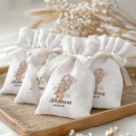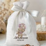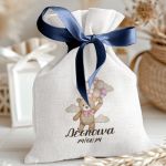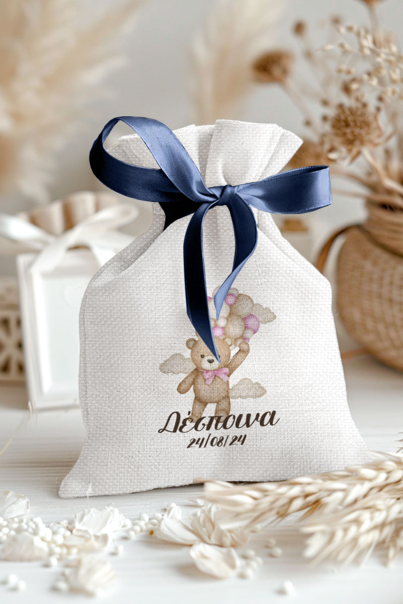 • Κάθε σετ μπομπονιέρας περιλαμβάνει ένα προσωποποιημένο πουγκί από ύφανση καμβά, με δυνατότητα επιλογής χρώματος και σχεδίου.