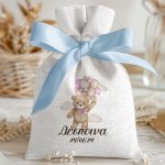 Μοντέρνες και Πρωτότυπες Μπομπονιέρες Βάπτισης με Πουγκί από Καμβά | Σετ Πουγκί, Εσωτερικό Τούλι & Κορδέλα Σατέν | Premium ποιότητα