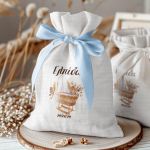 Μοντέρνες και Πρωτότυπες Μπομπονιέρες Βάπτισης με Πουγκί από Καμβά | Σετ Πουγκί, Εσωτερικό Τούλι & Κορδέλα Σατέν | Premium ποιότητα