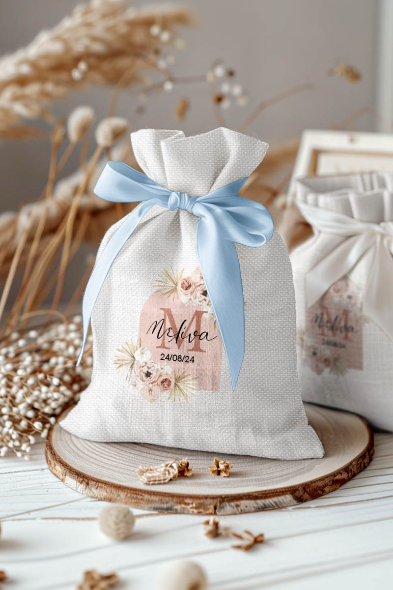 1.59€Μοντέρνες και Πρωτότυπες Μπομπονιέρες Βάπτισης με Πουγκί από Καμβά | Σετ Πουγκί, Εσωτερικό Τούλι & Κορδέλα Σατέν | Premium ποιότητα